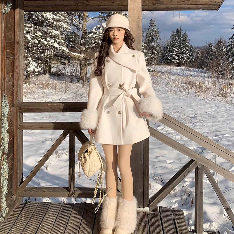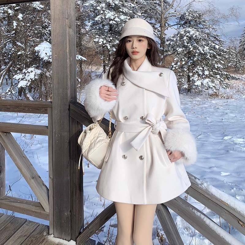 加棉加厚含腰带袖口毛毛外套女2025秋冬新款纯色上衣QJ0207