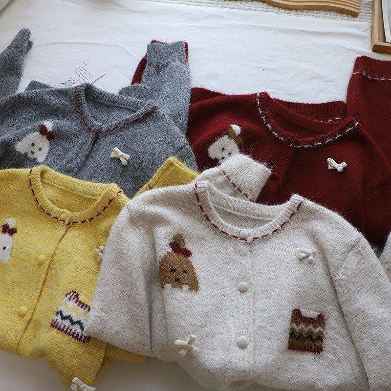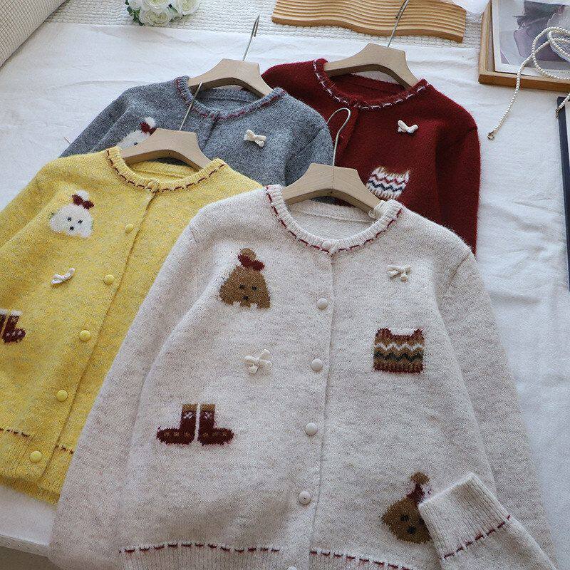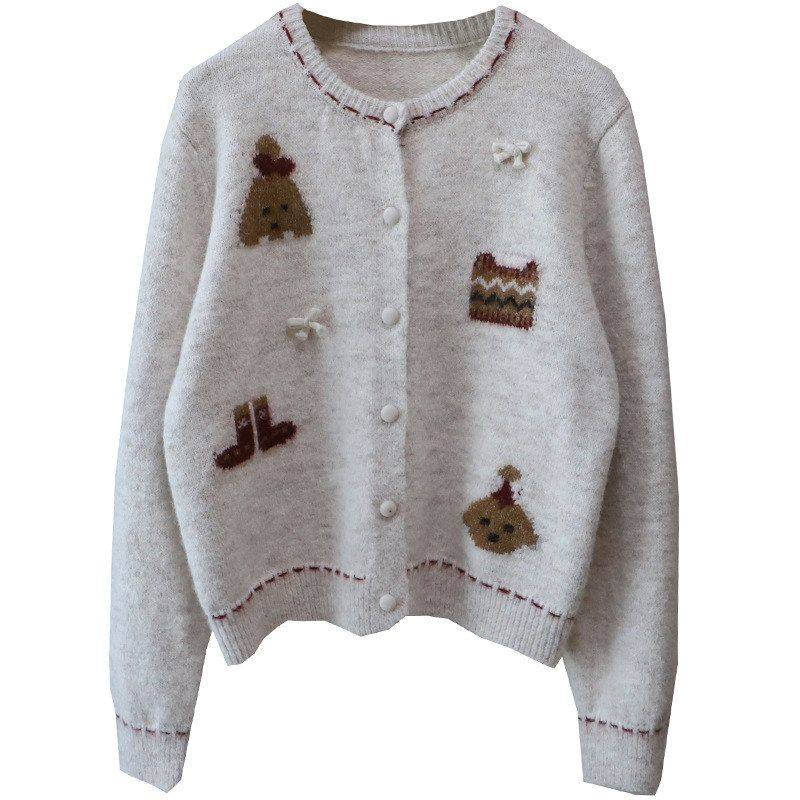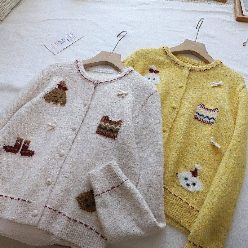 [比正]2025秋冬新款韩系减龄撞色卡通提花显瘦百搭开衫毛衣女5812