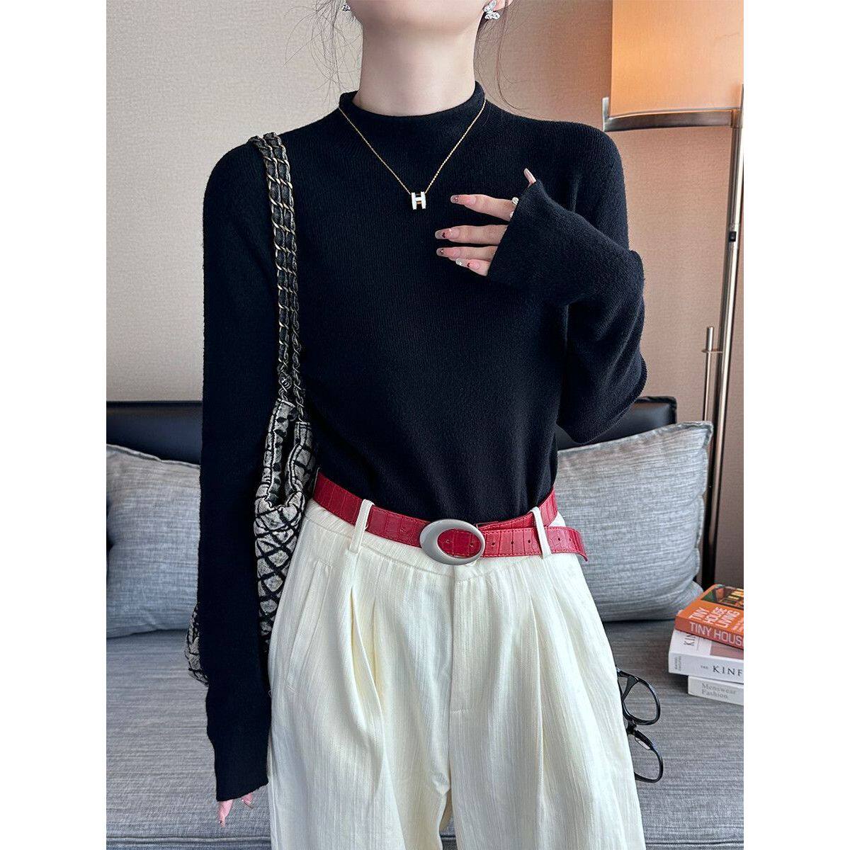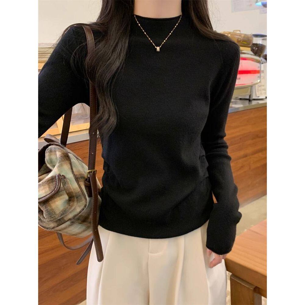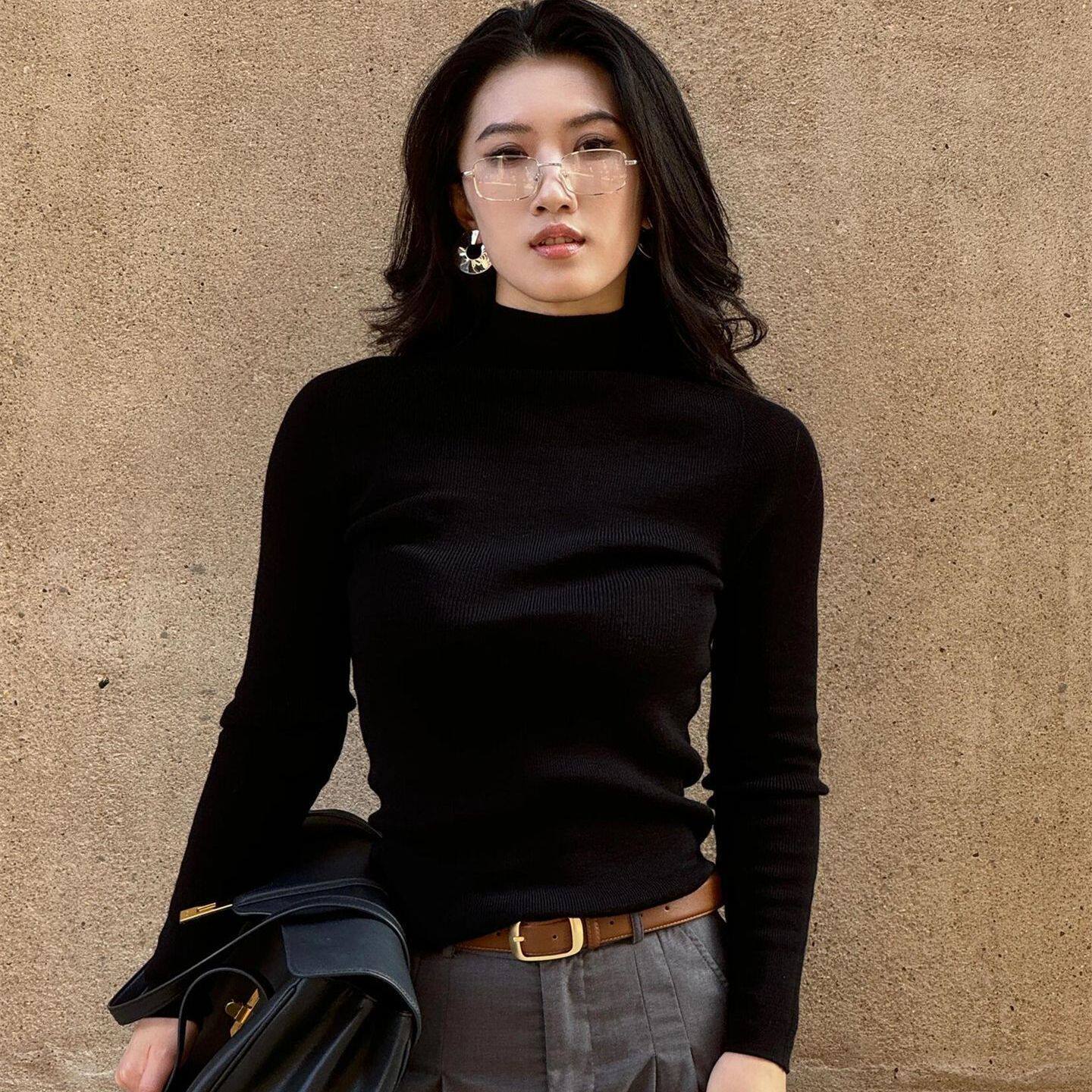 百搭基础款半高领简约针织打底衫女秋冬修身内搭长袖上衣冬天内搭