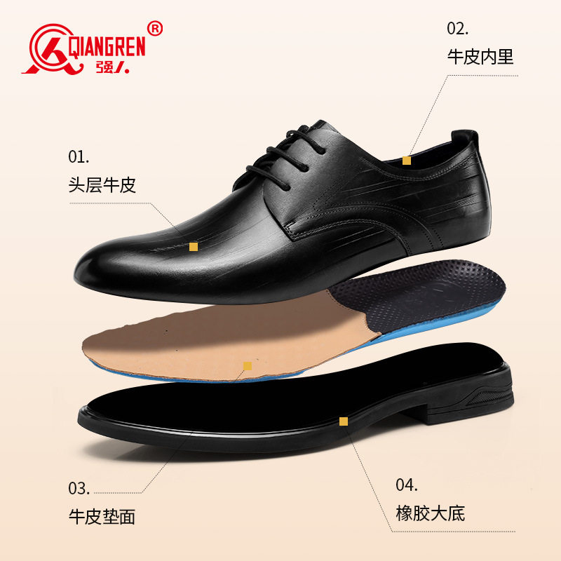 3515强人品牌正品2025春秋季新款男士尖头皮鞋商务正装皮鞋德比鞋