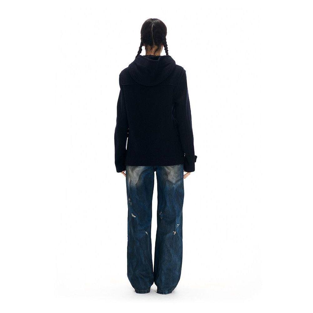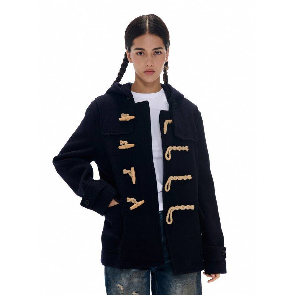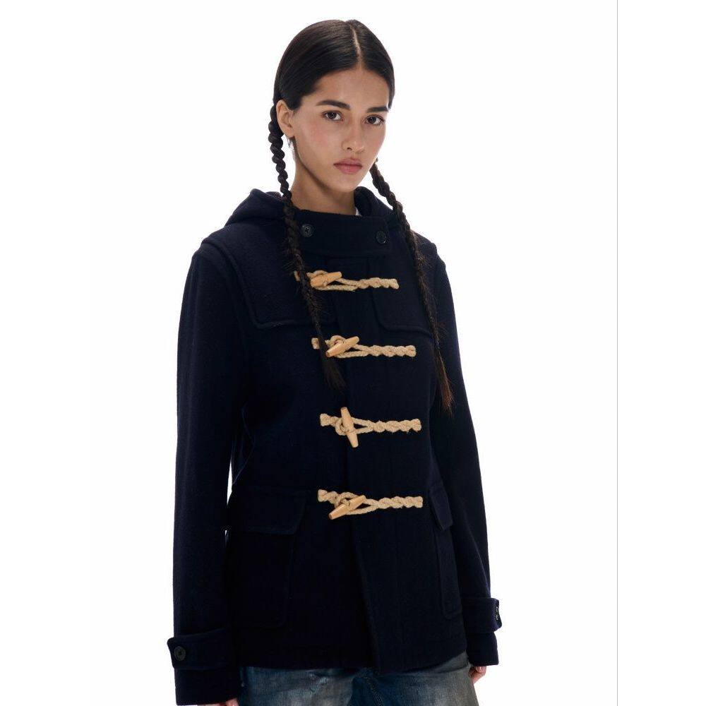 【休闲学院】2025秋冬新款牛角扣大衣高级复古时尚小众连帽外套女