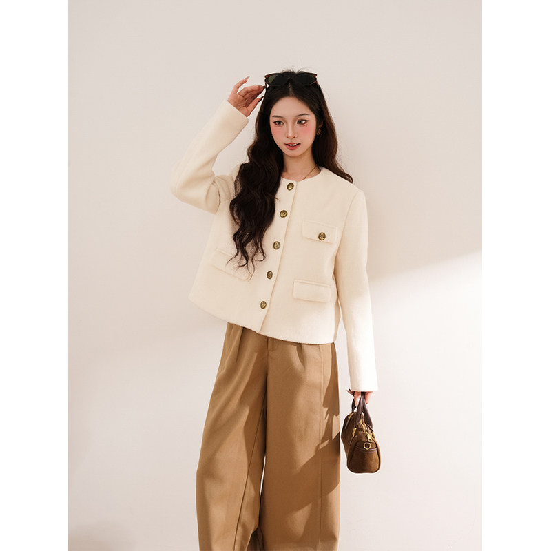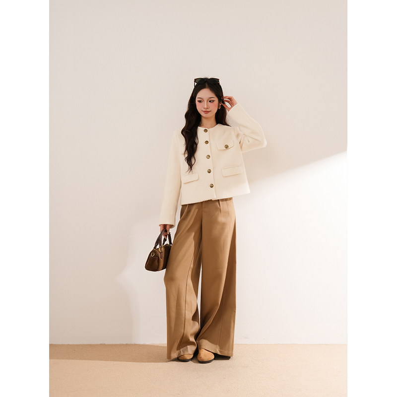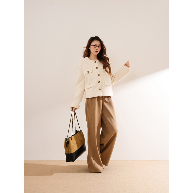 白烟鎏金 秋冬高级感小香外套设计感新款上衣女长裤裤显瘦套装
