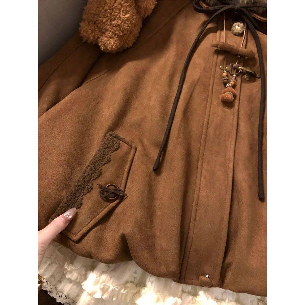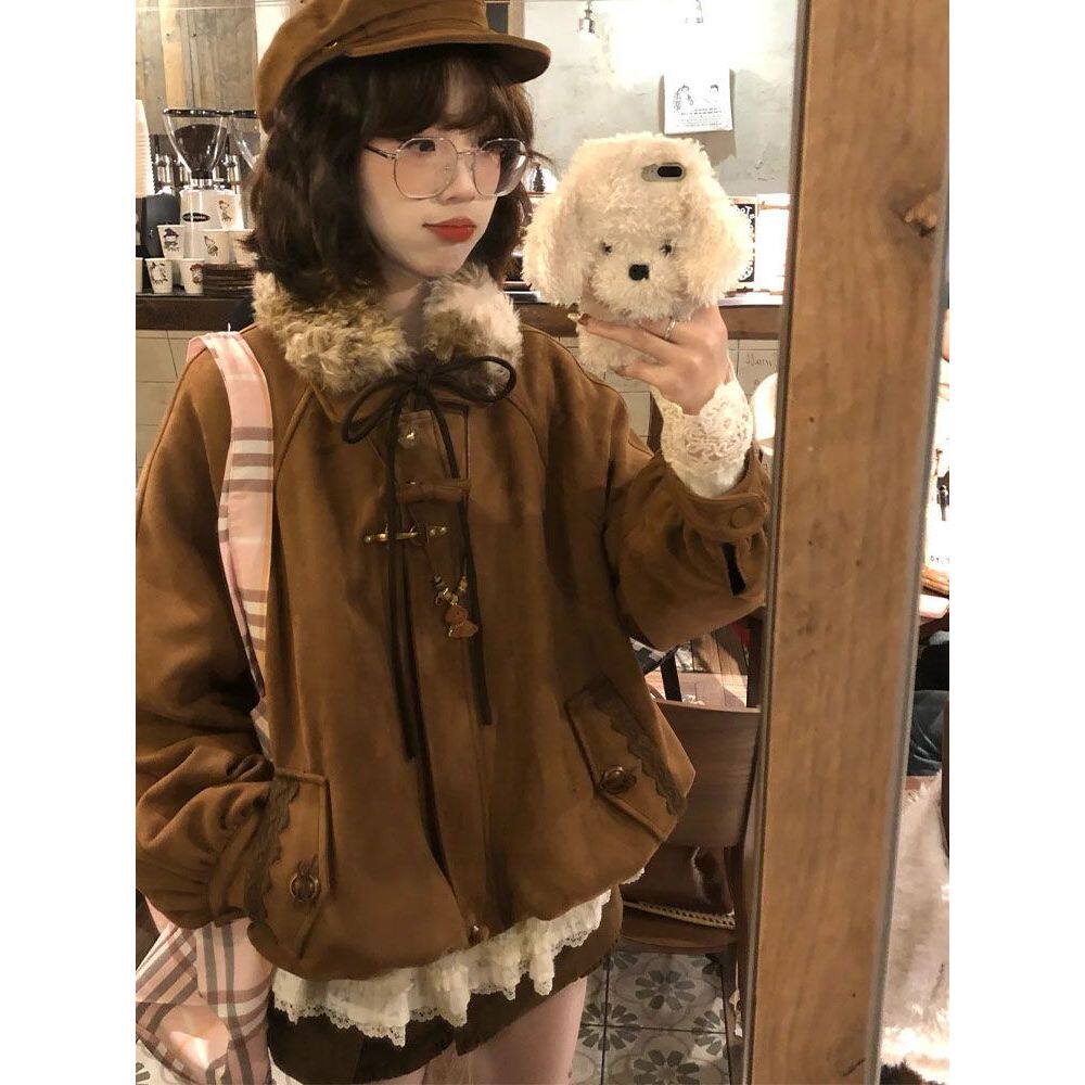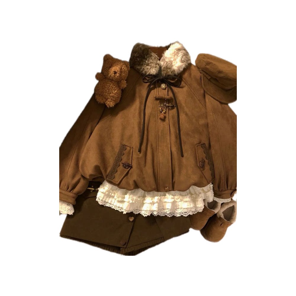 【糖炒栗子】小个子日系古早复古文艺冬季花苞外套+短裙+内搭套装