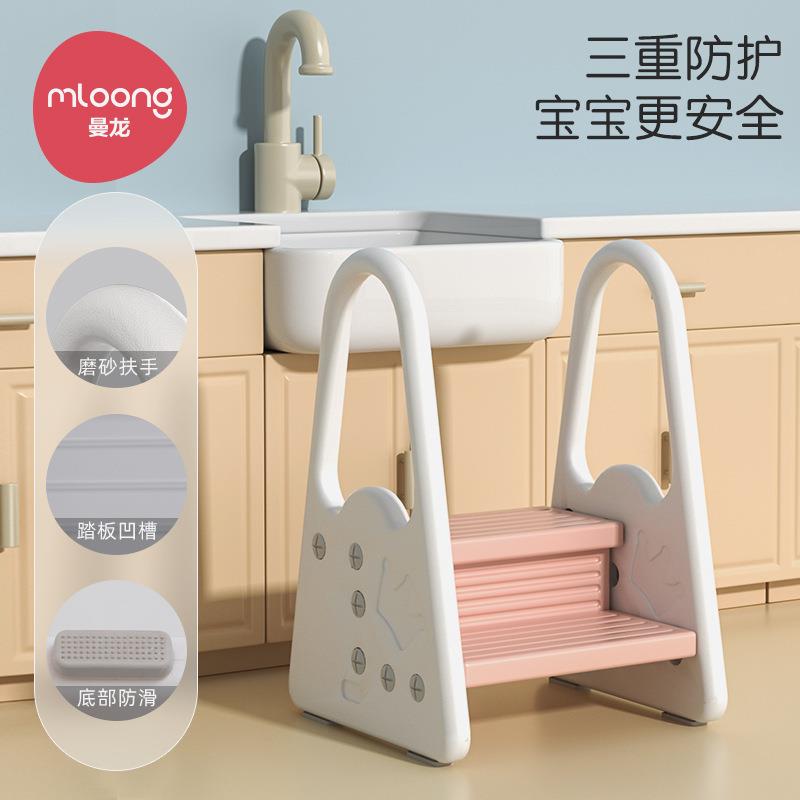 曼龙洗手台阶脚踩凳宝宝儿童踩脚凳卫生间防滑梯带扶手洗漱台垫脚