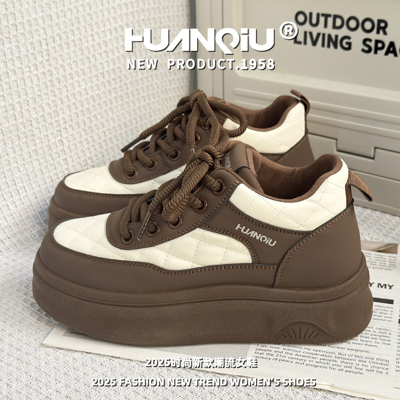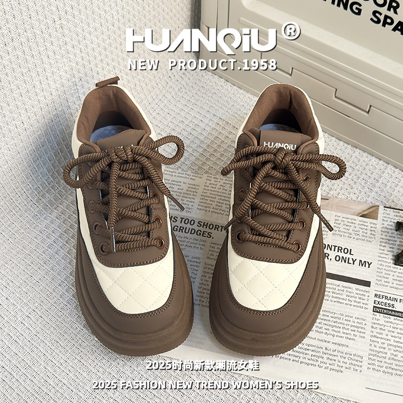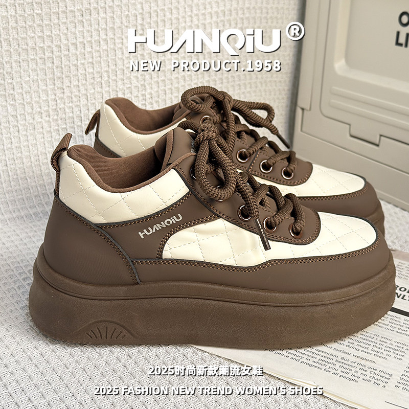 环球美拉德爆款厚底板鞋女2025时尚百搭校园舒适松糕鞋增高休闲鞋