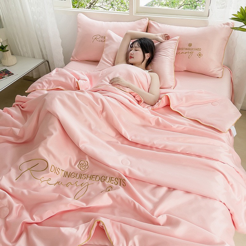 空调被子四季通用花缦水洗冰丝夏被四件套床单床笠单人双人夏凉被