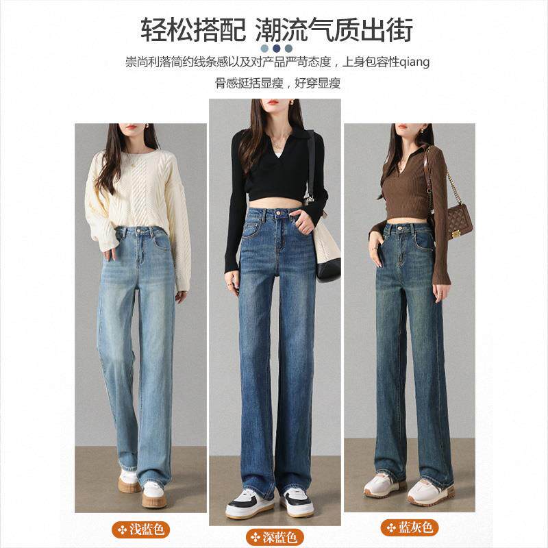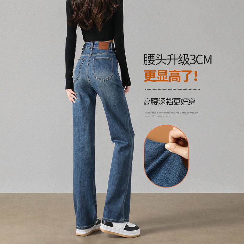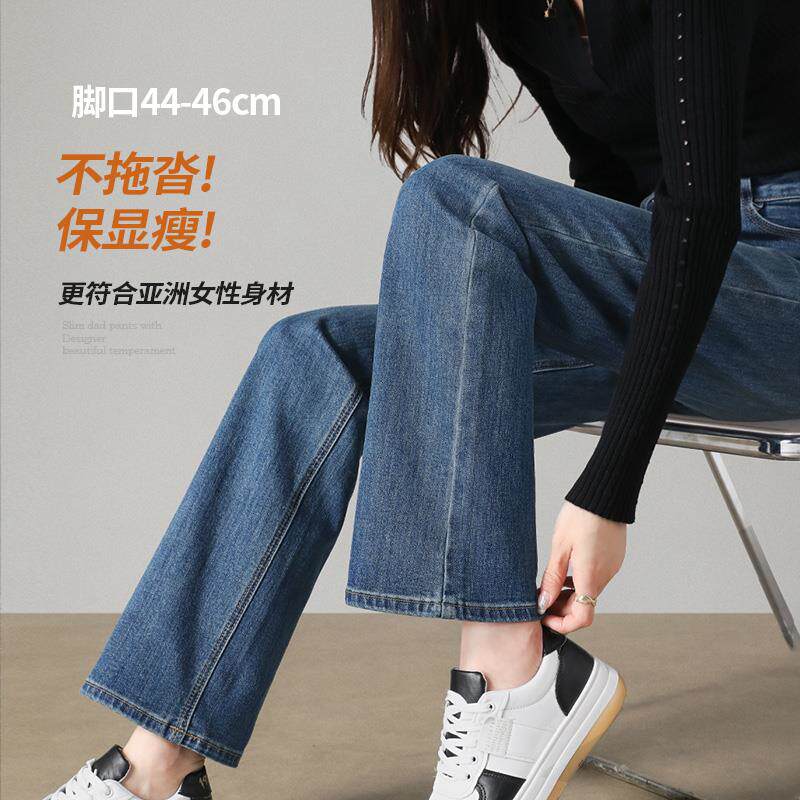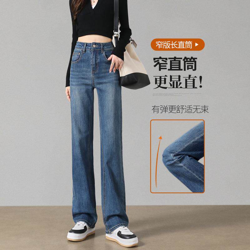 窄版直筒牛仔裤女显瘦2025年春秋季新款高腰小个子深蓝色阔腿裤子
