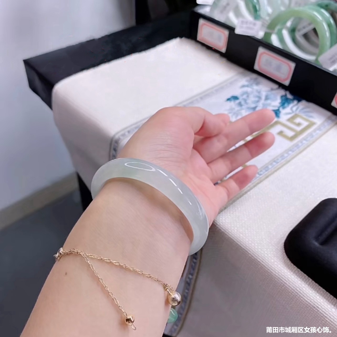 缅甸天然翡翠手镯少女款白月光淡绿浅绿翡翠色玉手镯冰种通透