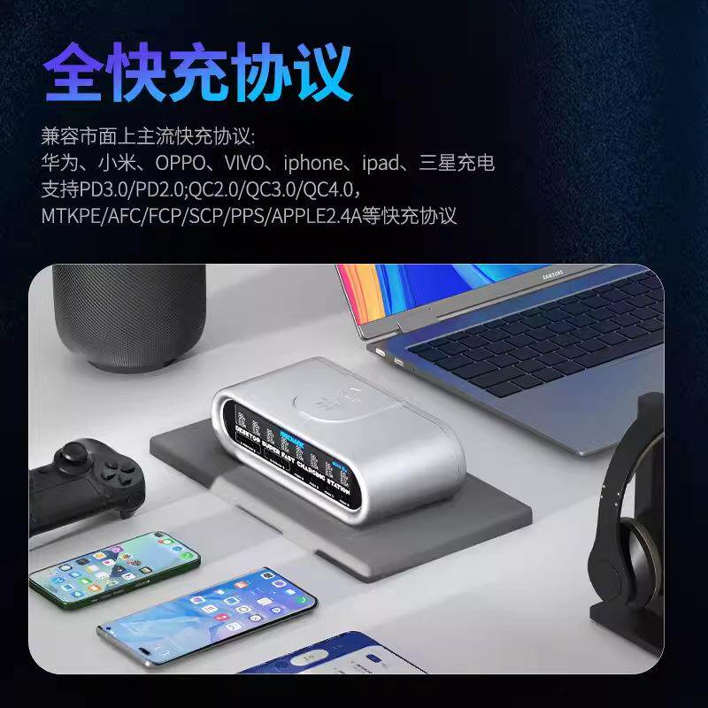 桌面多口闪充多功能插排大功率四核变压器无线快充E-Power