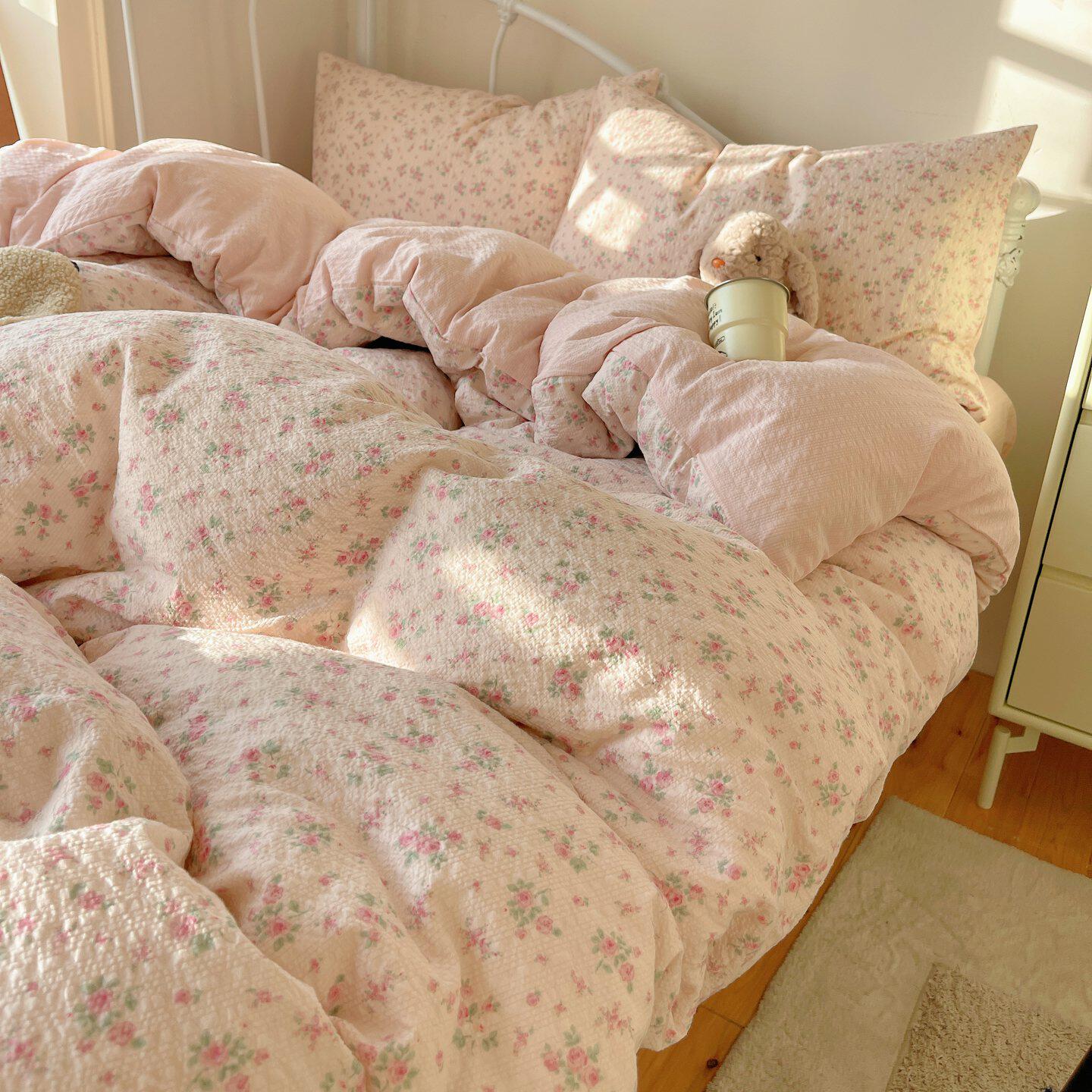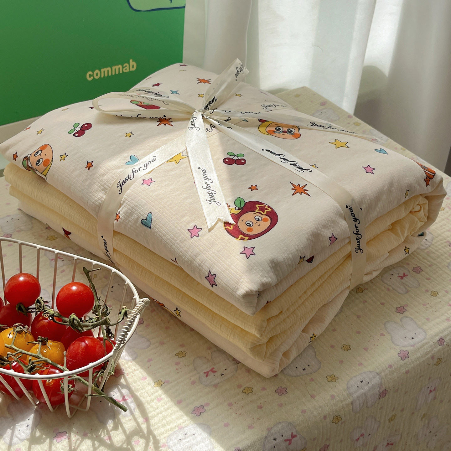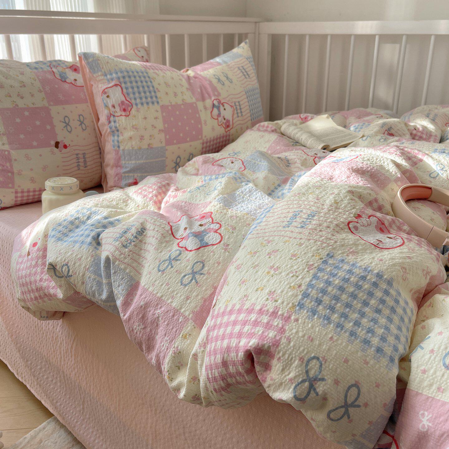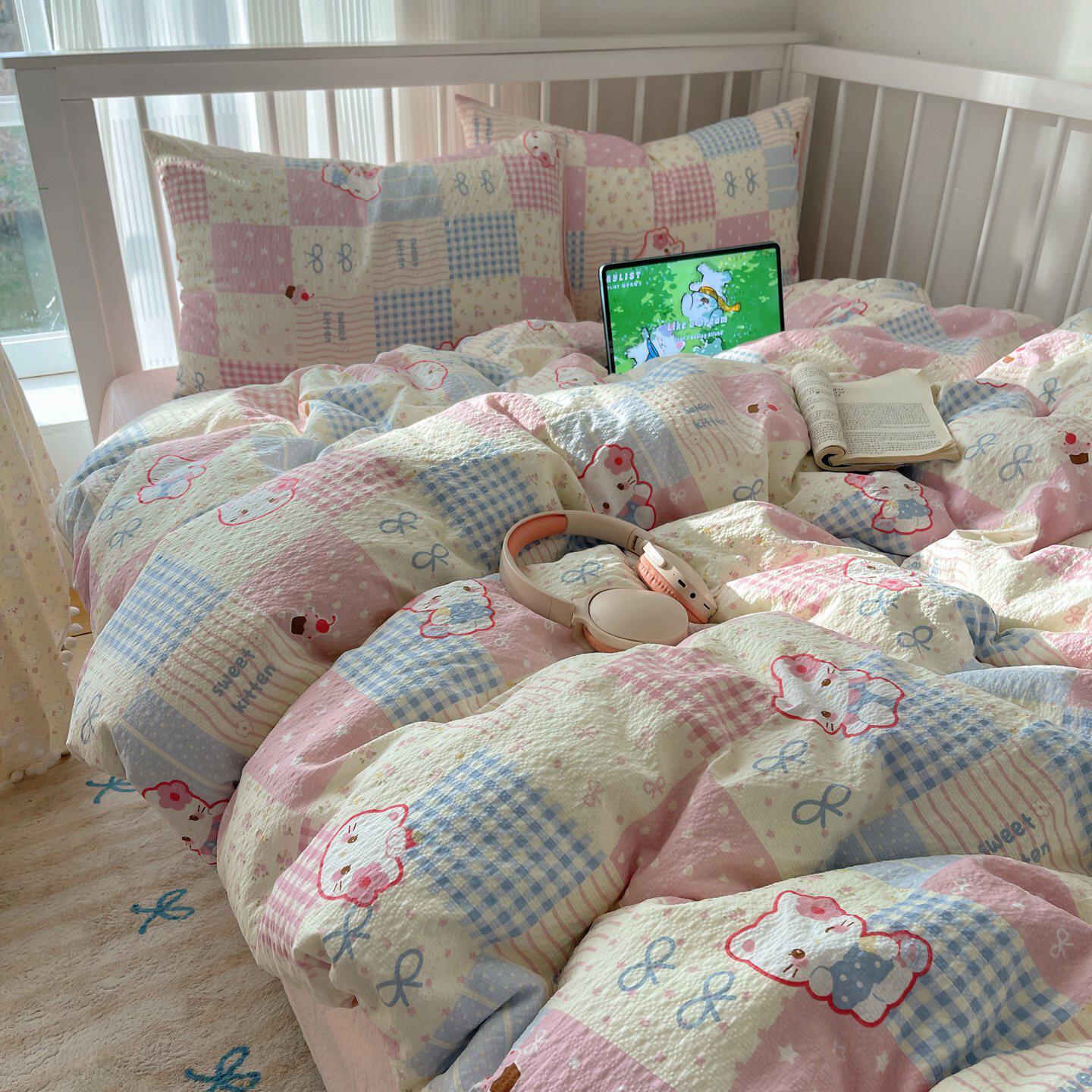 新款A类化纤面料防尘螨防过敏宿舍三件套亲肤透气泡芙纱四件套