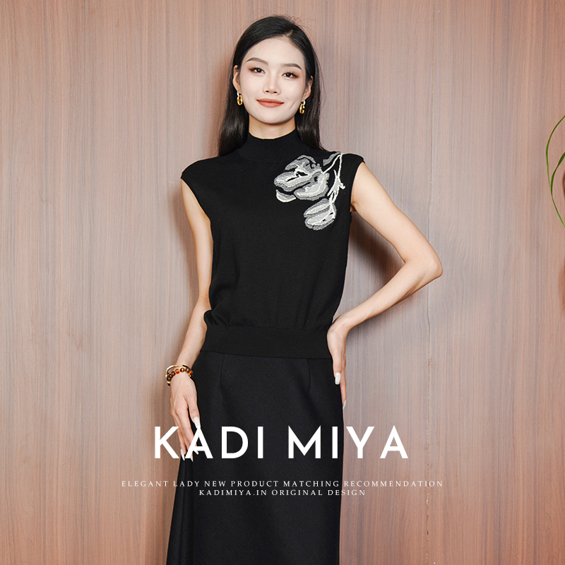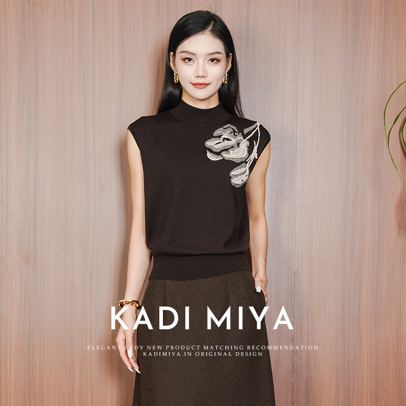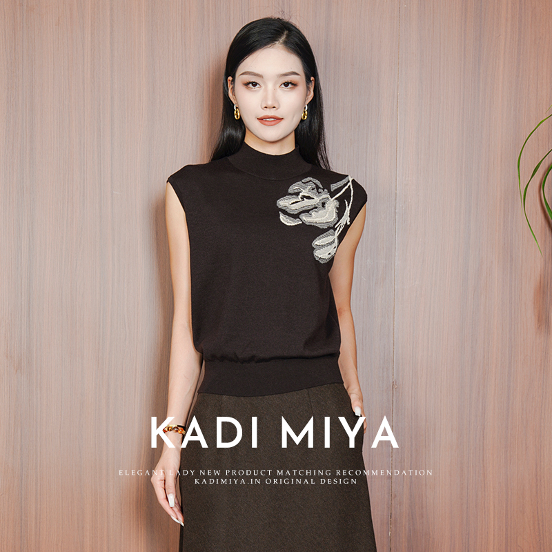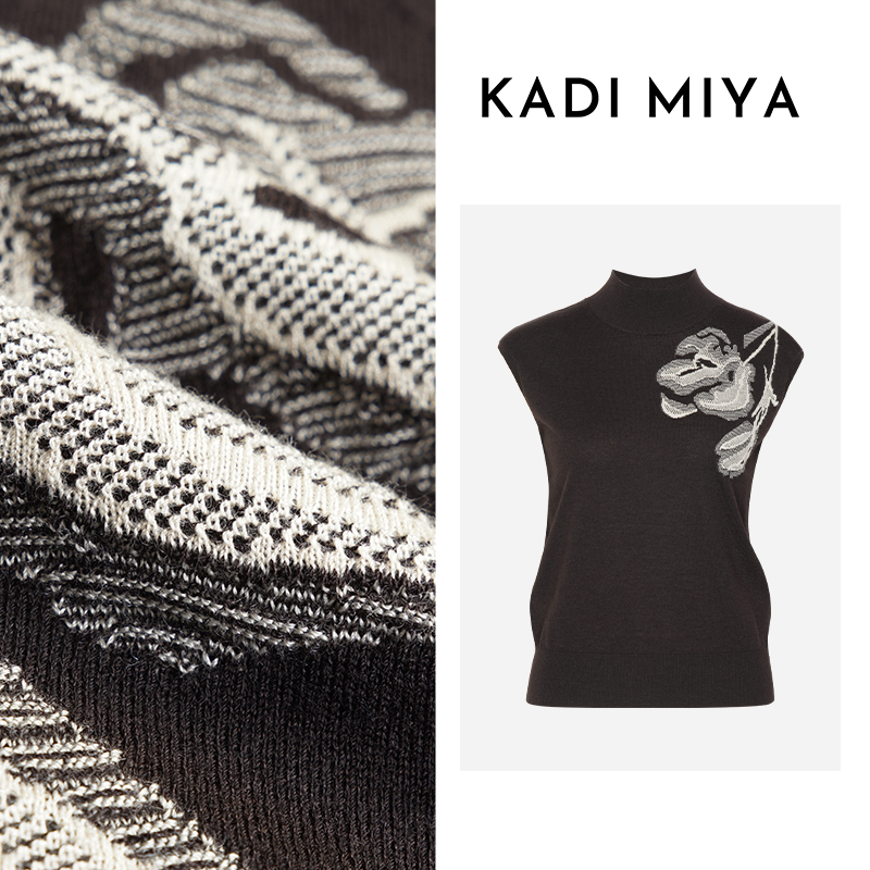 KADIMIYA【艺术笔触】气质新中式提花绵羊毛立领弹力针织衫上衣新