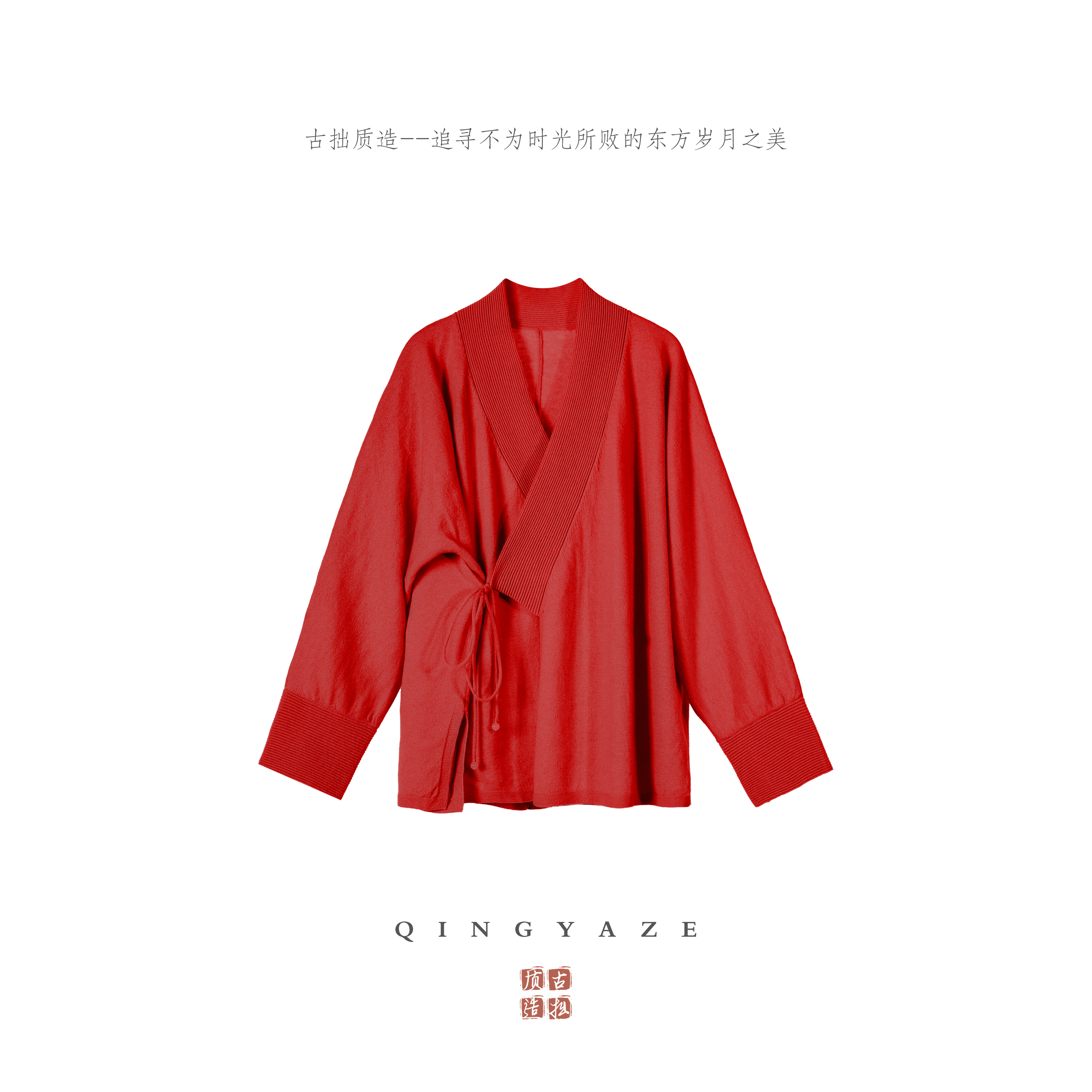 逍遥游!36针谷波领超细美丽诺羊毛14针加长织造新中式上衣!7887