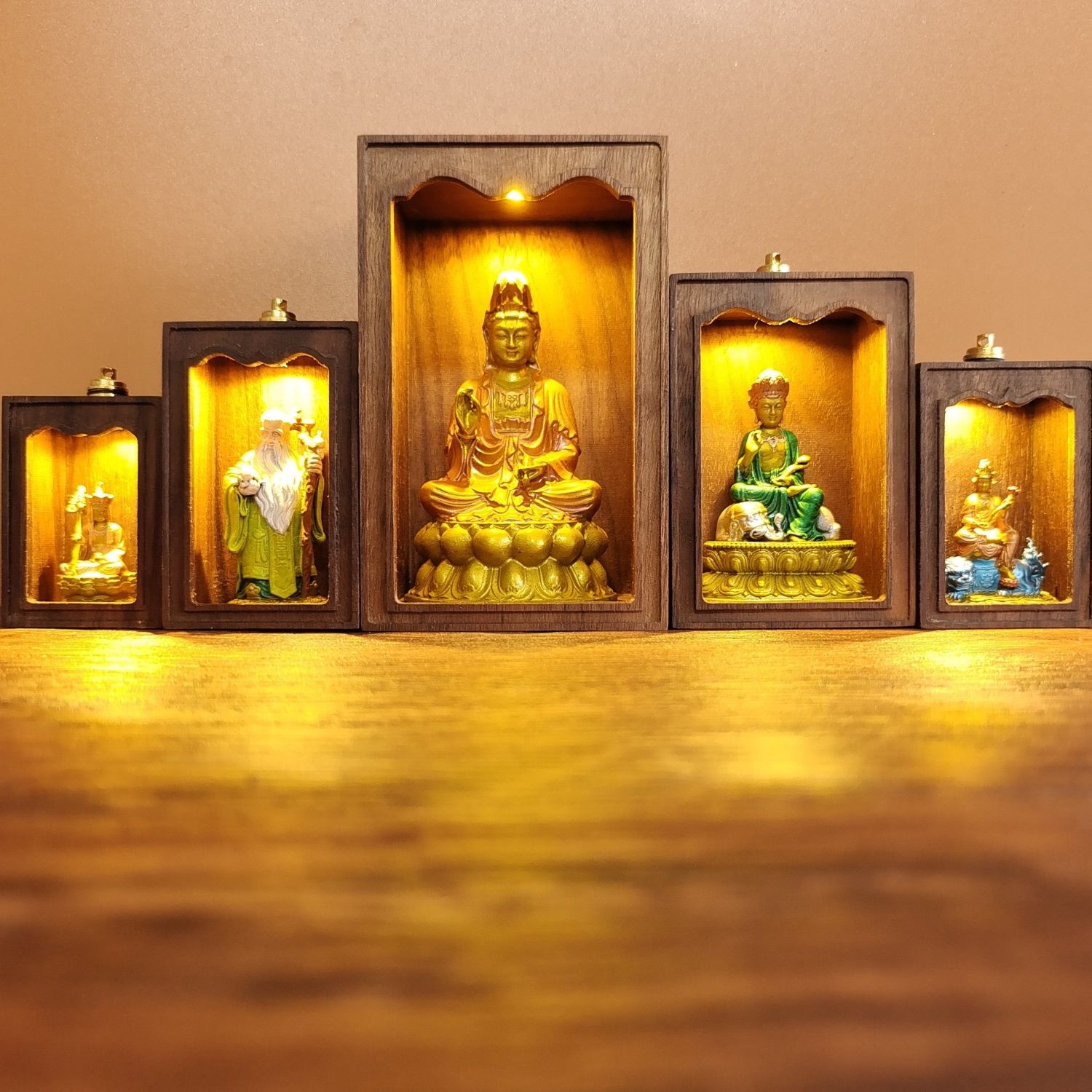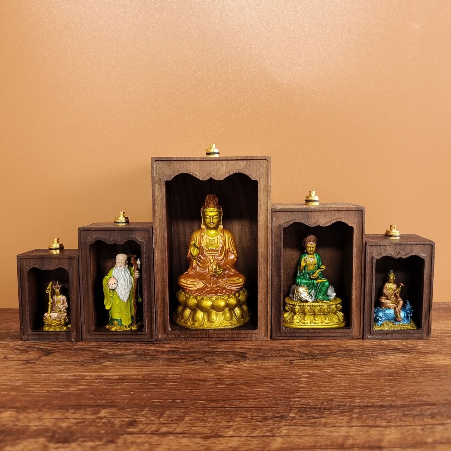 手工定制地藏观音小铜佛家用带灯迷你佛龛小神龛小铜像小神像佛龛