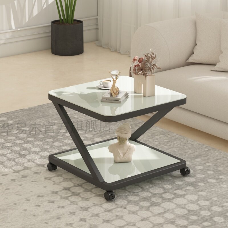 可移动茶几钢化玻璃餐桌沙发边几床头储物架茶桌小茶几沙发小桌子