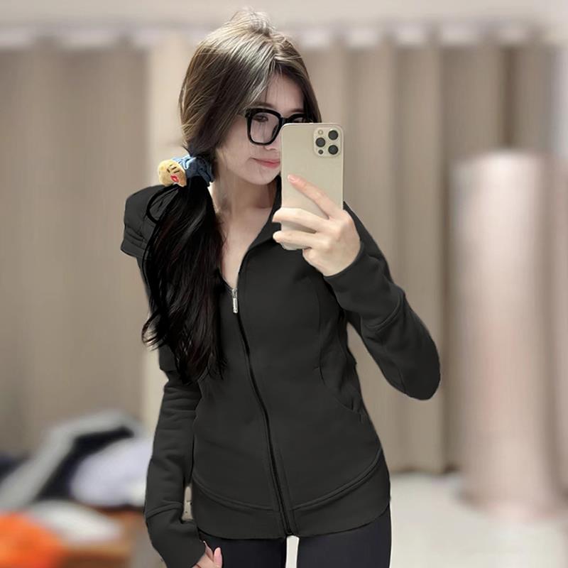 外套女秋冬季连帽卫衣灰色2025新款加绒加厚修身正肩短款开衫上衣