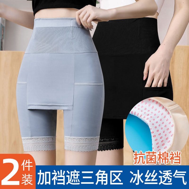 新品福利裆三角区防走光夏季薄款冰丝蕾丝高腰收腹打底裤安全裤女