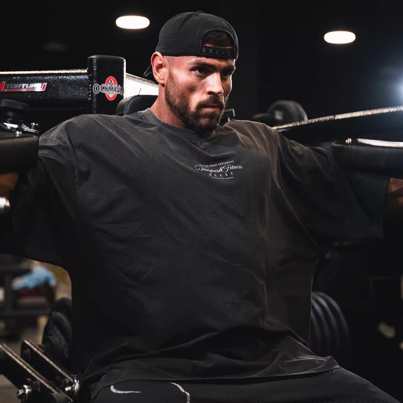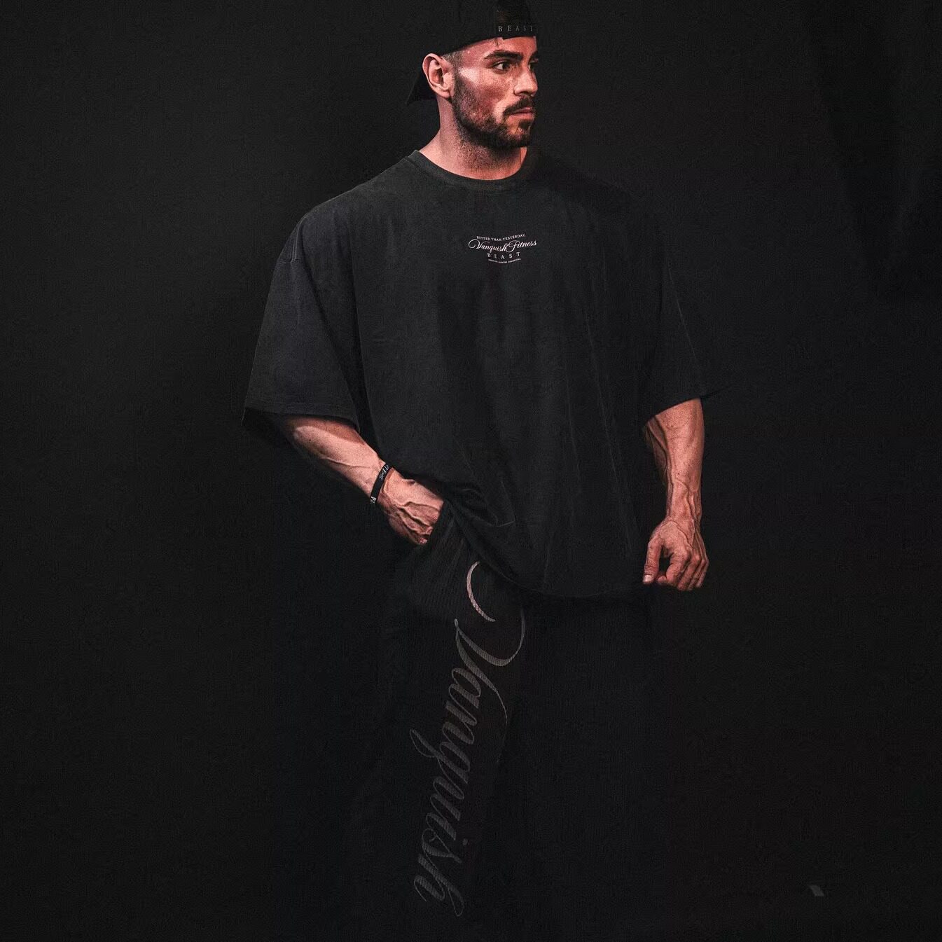 古典何赛同款VQ健身训练弹性棉水洗宽松短袖男女运动美式透气T恤