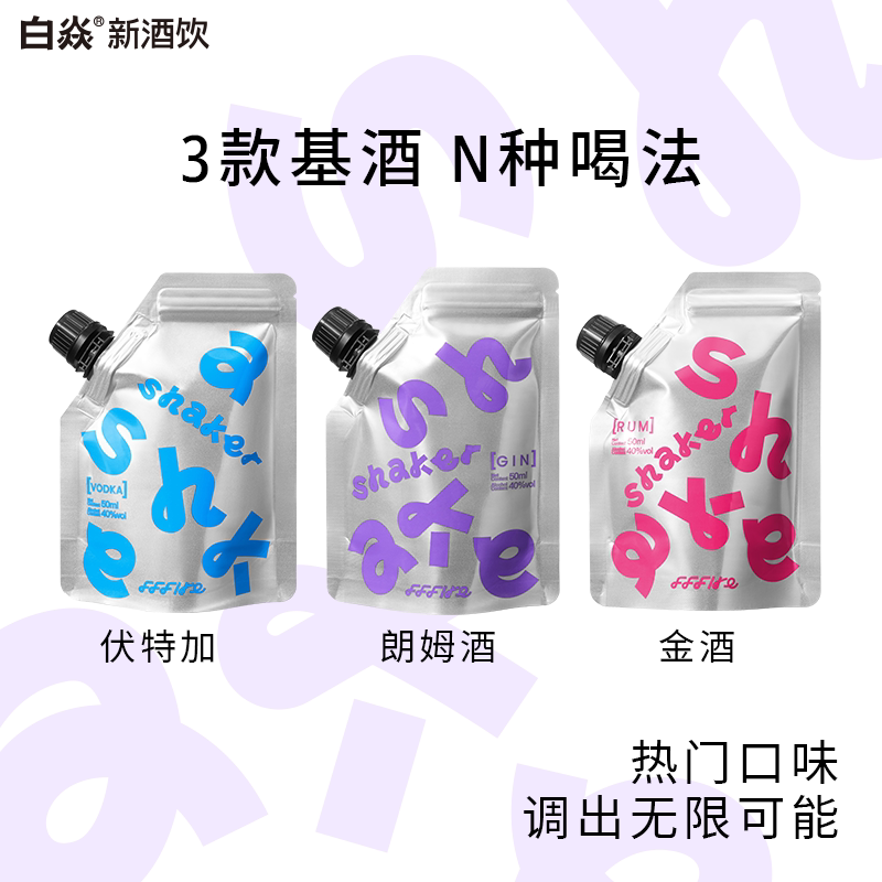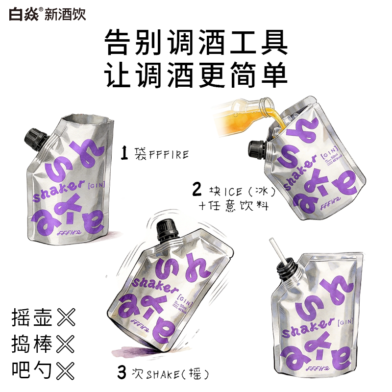 白焱FFFIRE摇摇袋洋酒组合套装轻松调酒基酒伏特加朗姆酒金酒袋装