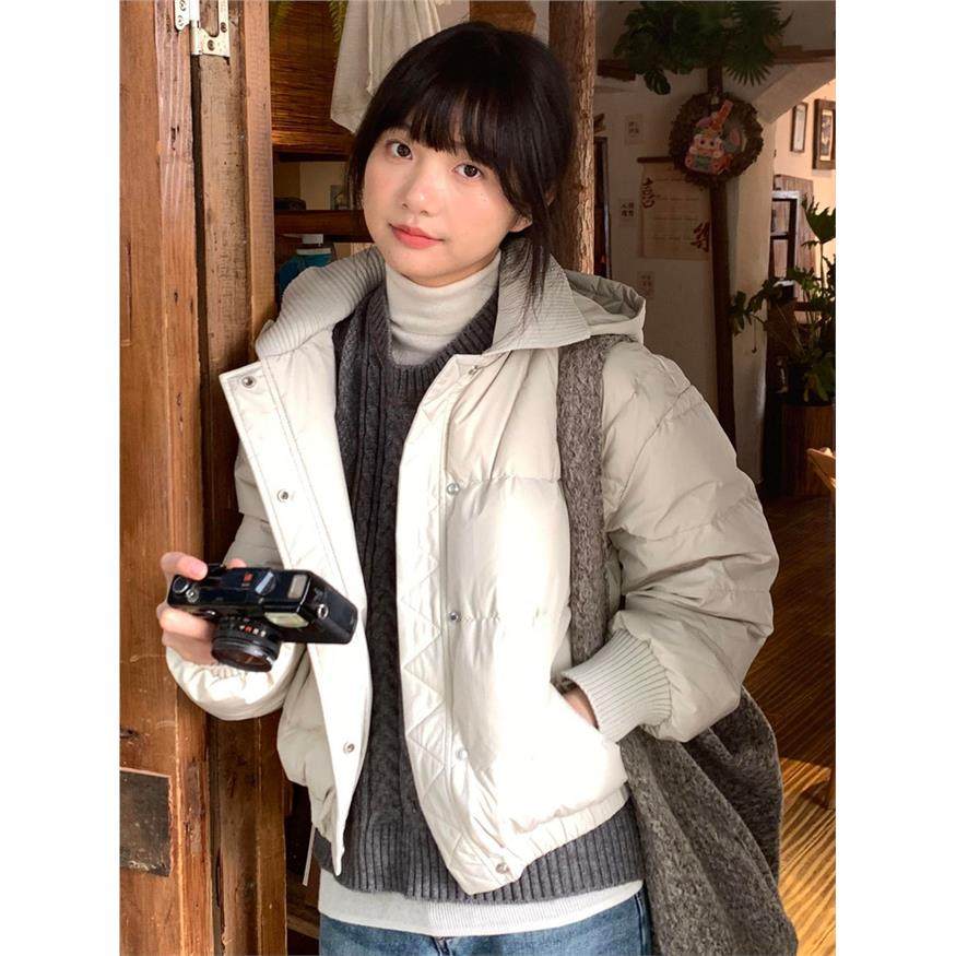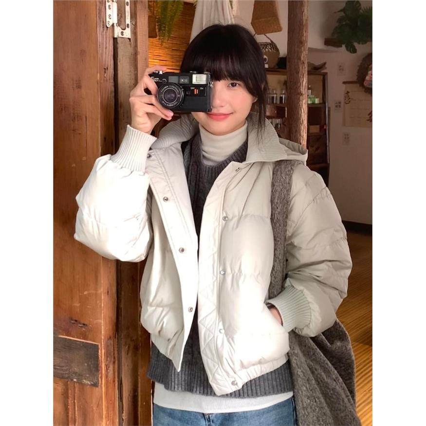美式覆古短款连帽棉服女款冬天加厚保暖小个子面包服外套冬季棉衣