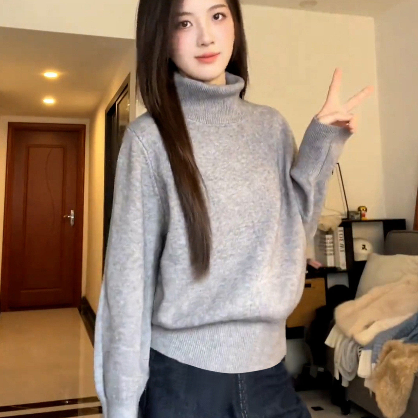 慵懒高级感灰色高领毛衣女秋冬季2025新款打底内搭可外穿针织上衣