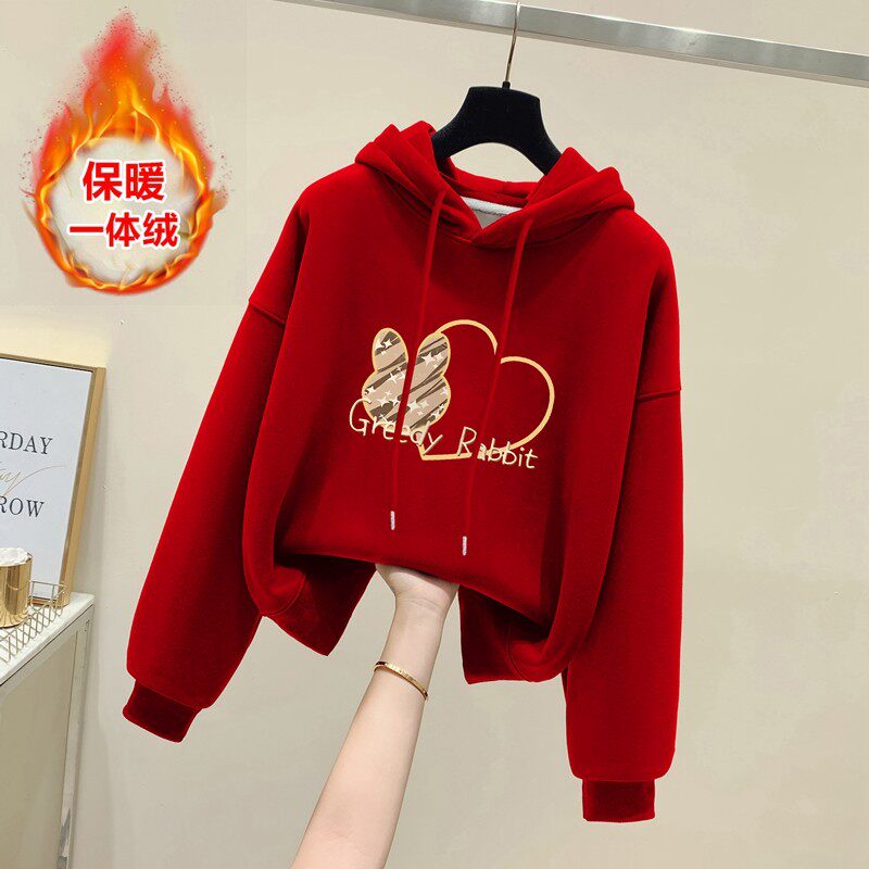 山东即墨冬季连帽卫衣女款2025新款爆款秋冬休闲宽松加绒加厚外套