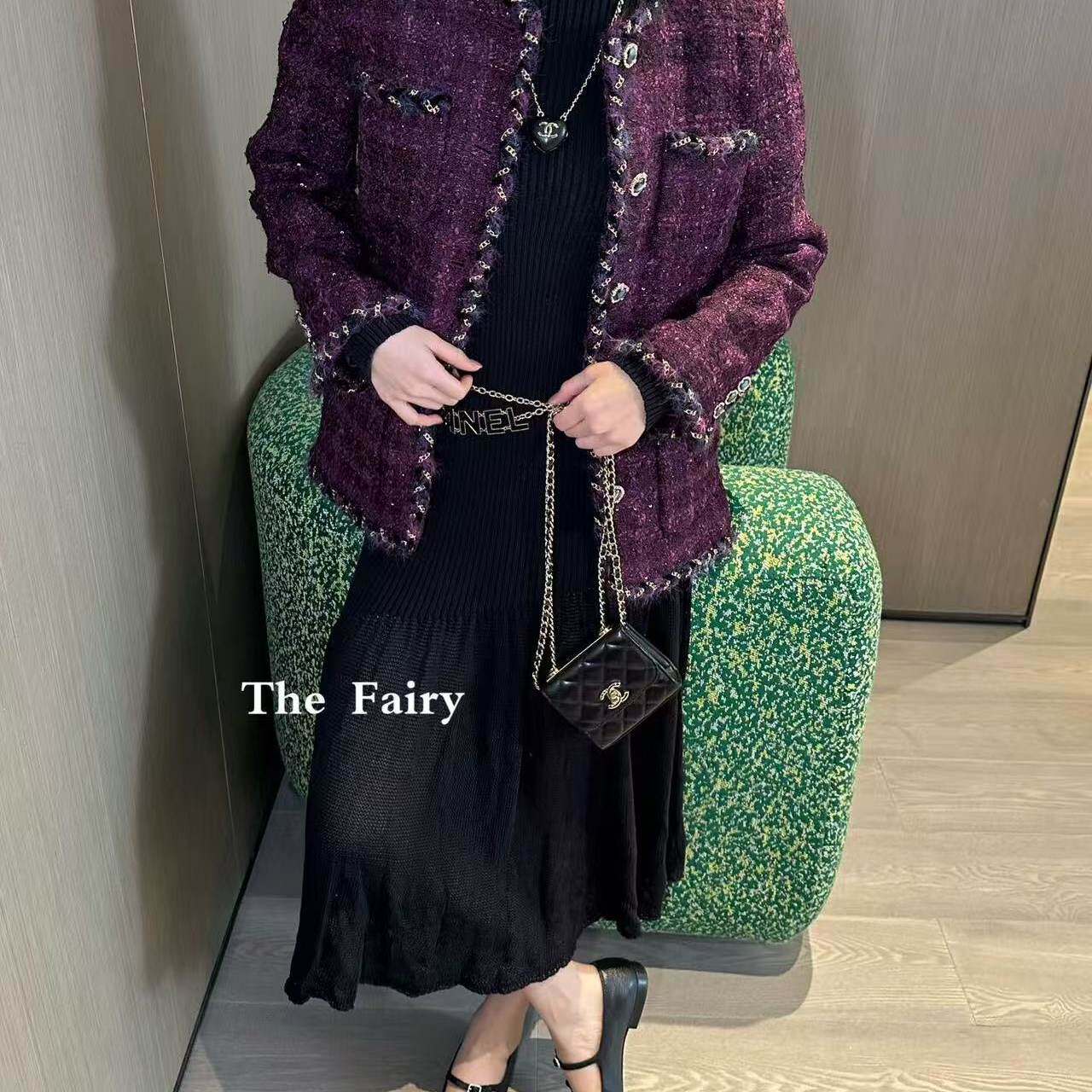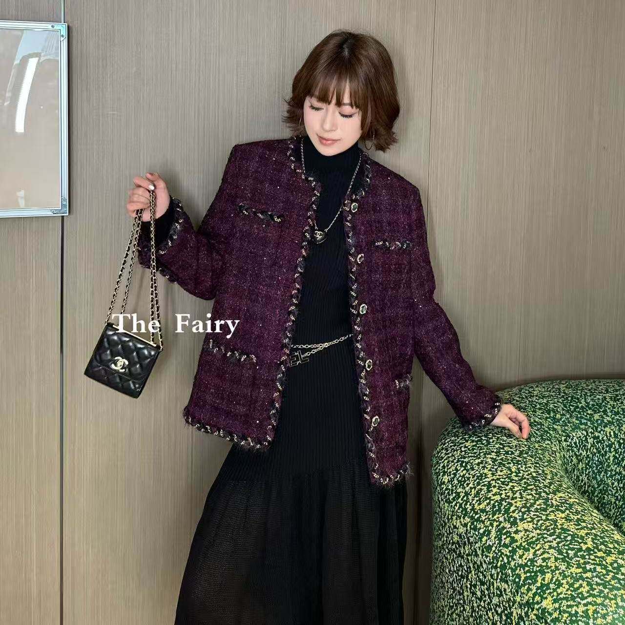 好漂亮紫色重工小香风外套女2025年冬季新款短上衣名媛气质时尚潮