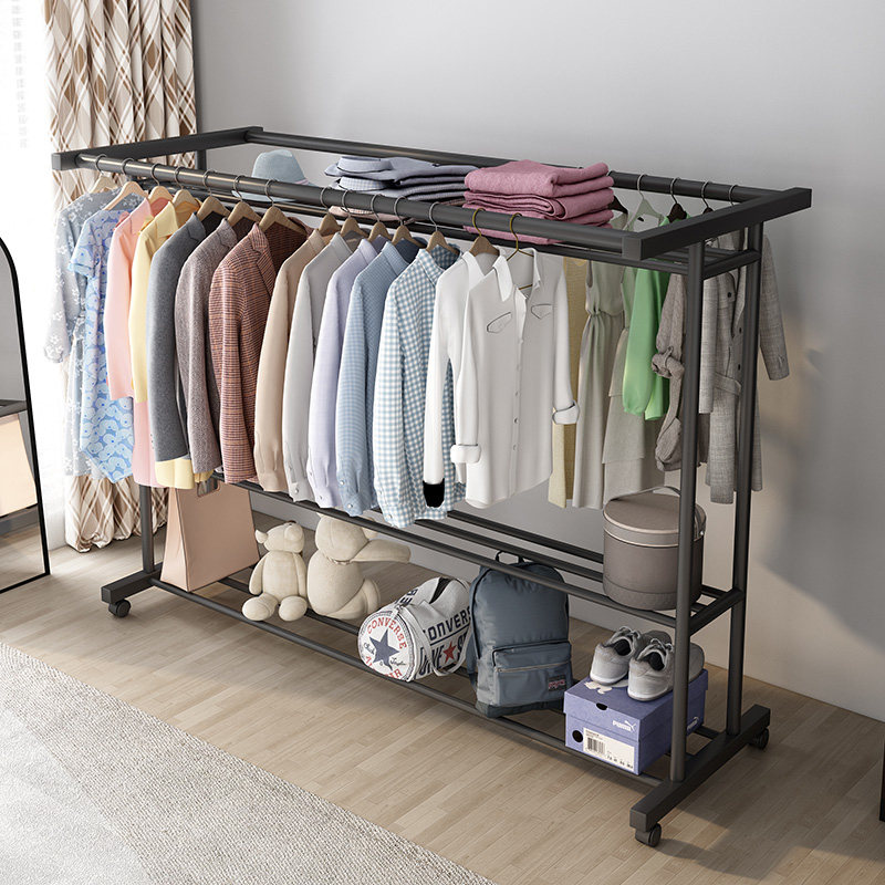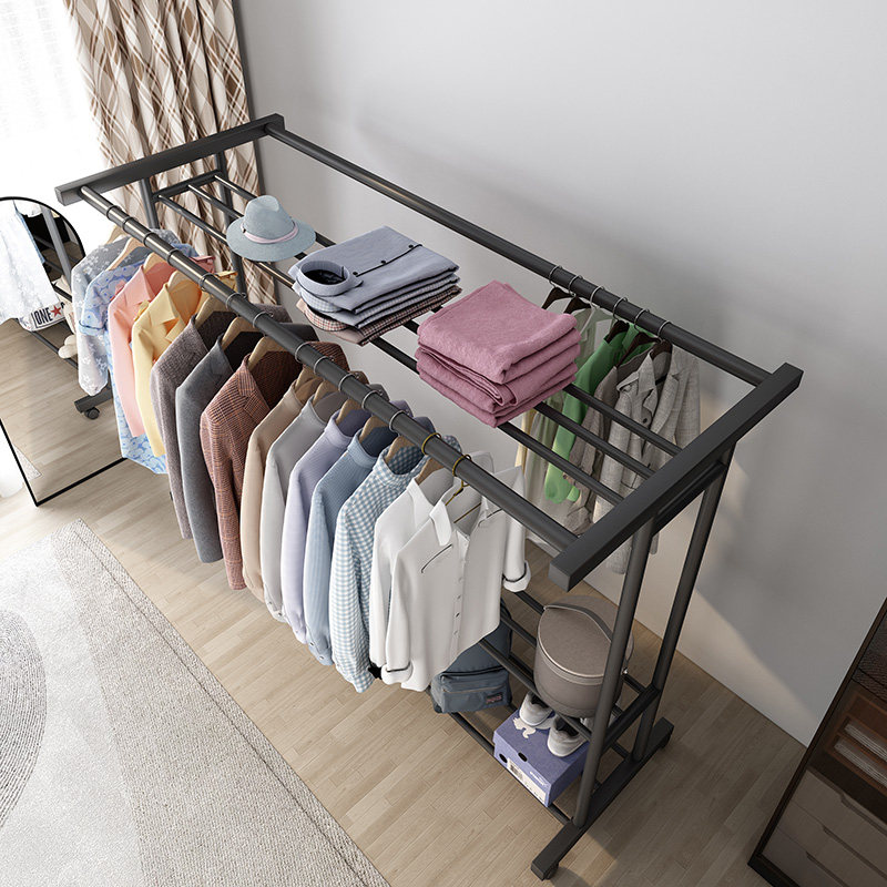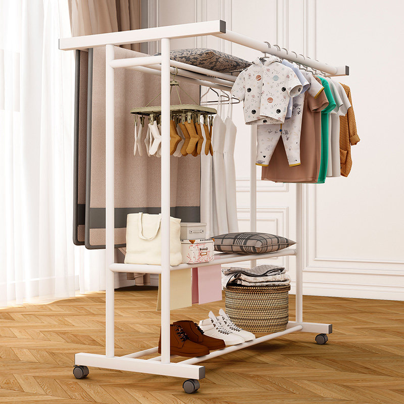 加粗挂衣架落地卧室凉衣架阳台家用晾衣架双层挂衣杆简易衣帽架