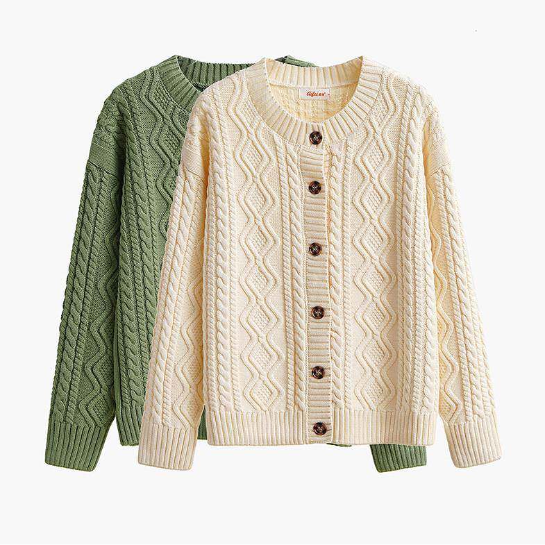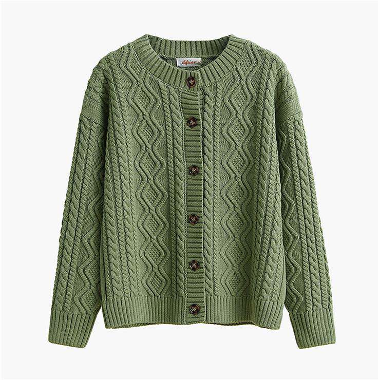 加10%纯棉开衫外0套IHL女针搭织衫宽松百秋冬厚粗针麻花女士打底