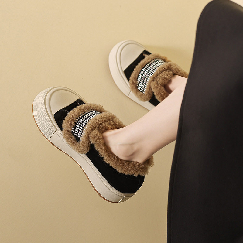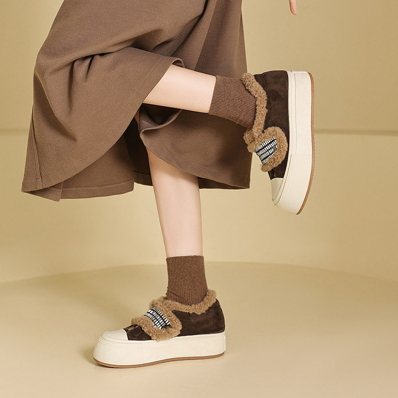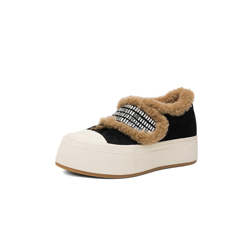 女士加绒厚魔术贴棉鞋2025年秋冬新款圆头松糕底厚底休闲深口单鞋
