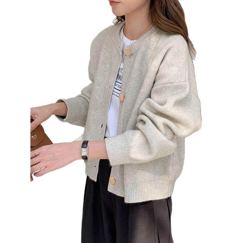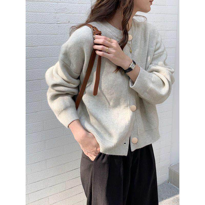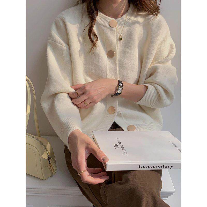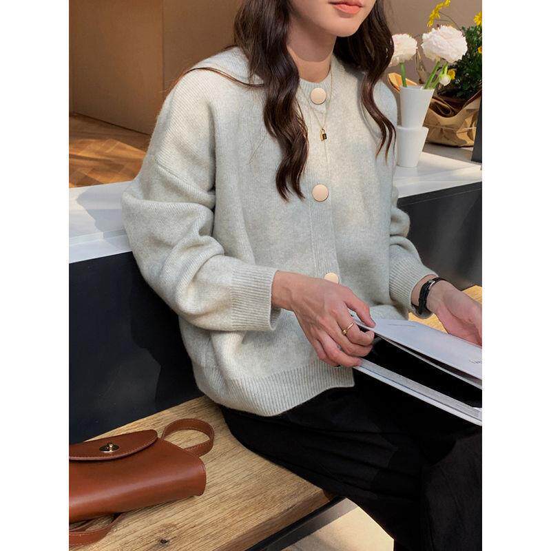 温柔松弛感针织开衫女早春装秋冬季复古纽扣上衣宽松外套毛衣