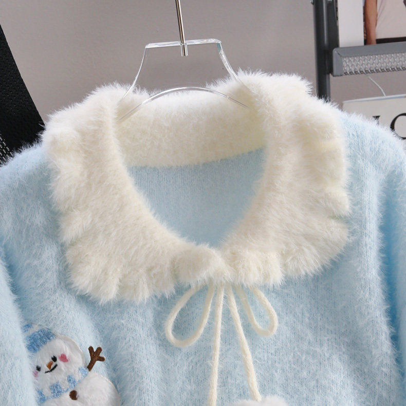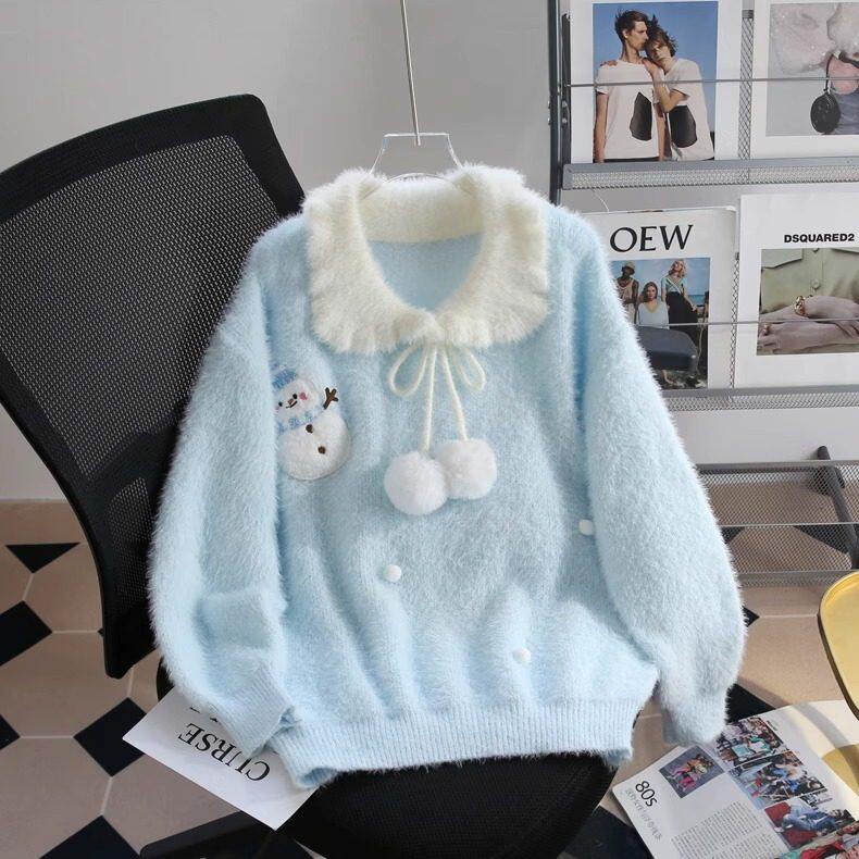 软糯奶呼呼甜美毛衣女秋冬慵懒风娃娃领针织衫高初中学生大童上衣