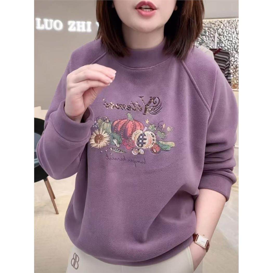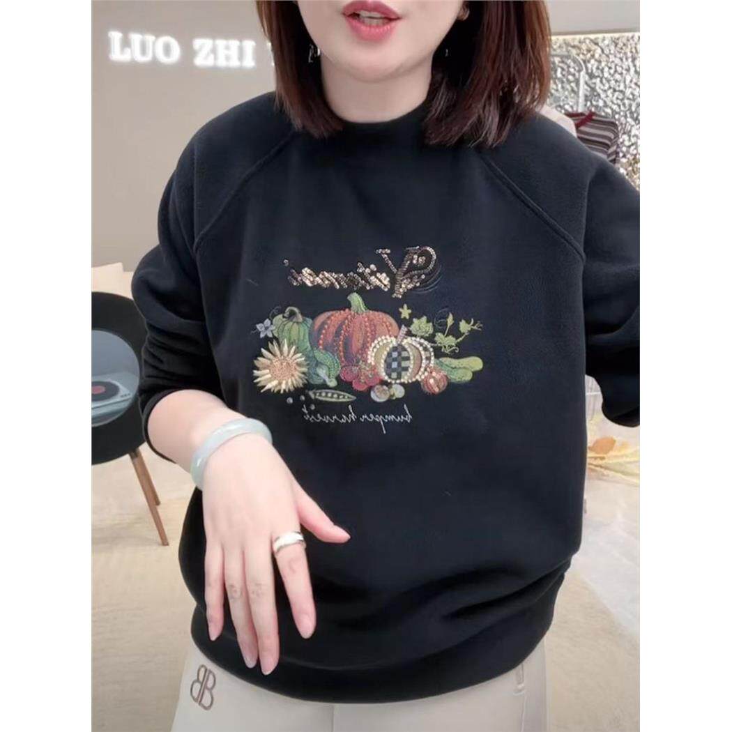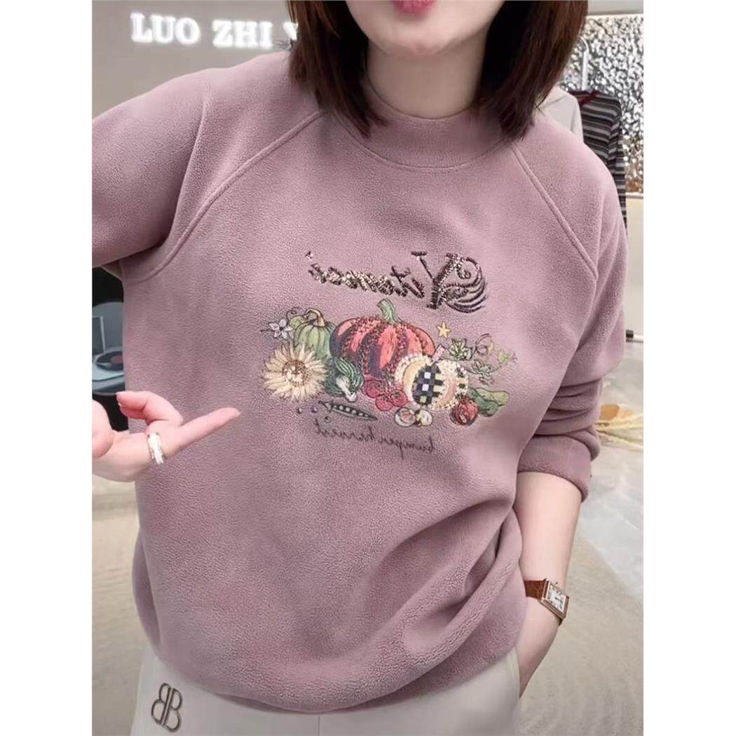 2025秋冬新款时尚加厚双面奥粒绒卫衣女休闲百搭保暖立领刺绣上衣