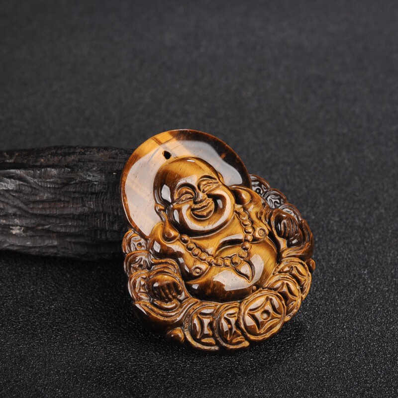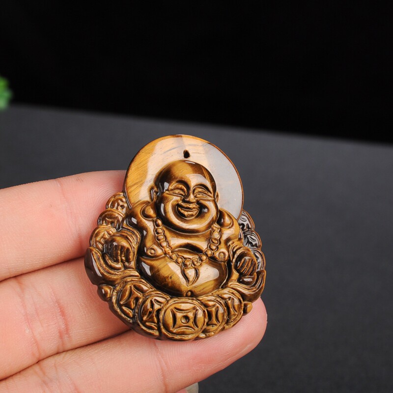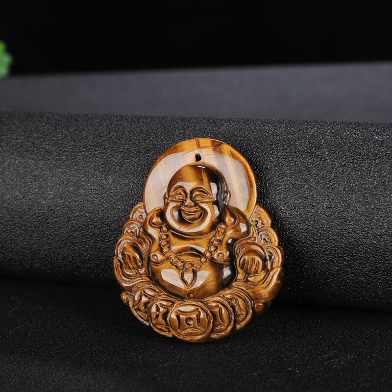 猫眼石金钱佛吊坠虎睛石木变石弥勒笑佛玉坠大肚佛公女款项链挂件
