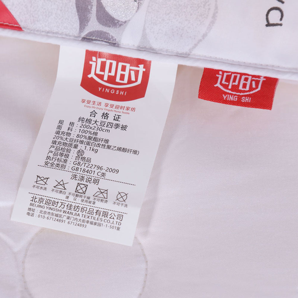 北京迎时家纺纯棉大豆四季被大豆纤维四季被单双人纯棉四季被包邮