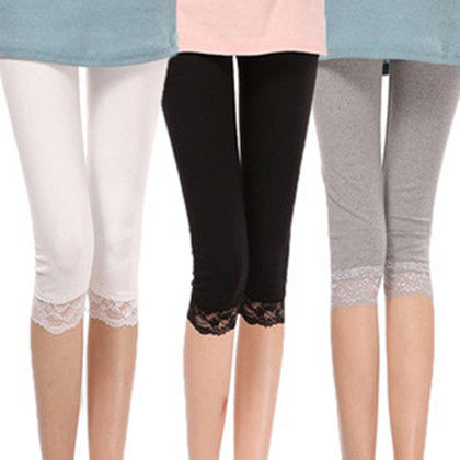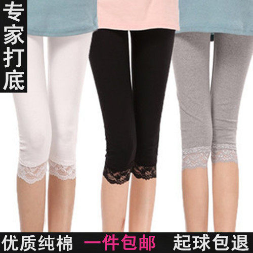 外穿七分打底裤蕾丝花边运动防走光瑜伽中短裤高弹显瘦胖mm特大码