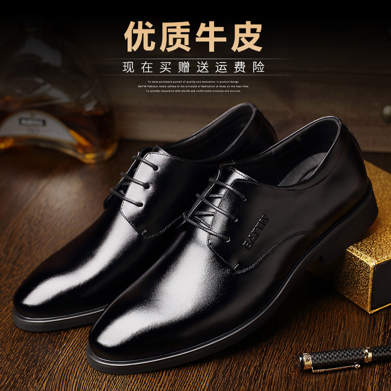 男士皮鞋男款商务正装真皮内增高英伦黑色结婚新郎西装鞋春秋皮鞋