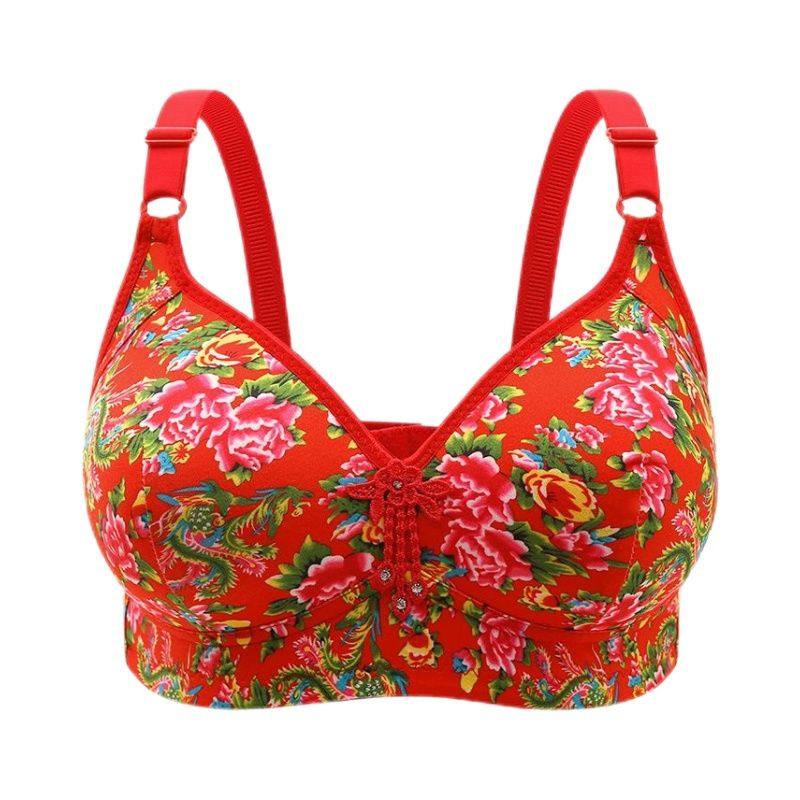 【东北大花】新款本命年大红色内衣性感套装聚拢薄款无钢圈文胸罩