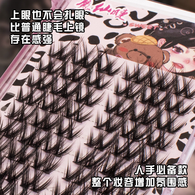 魔仙睫欧美款免胶假睫毛大花卷加长浓密分段卷翘轻欧单簇芭比新手