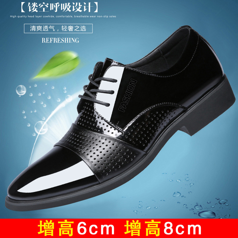 名牌高端优质品质增高男鞋夏季男士镂空透气内增高8厘米6公分皮鞋