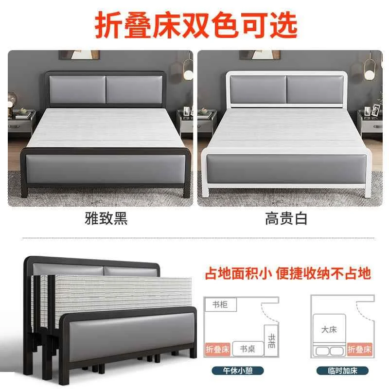 家用折叠床简易1.5米铁艺双人床出租房用1.2米加粗加厚单人铁新品