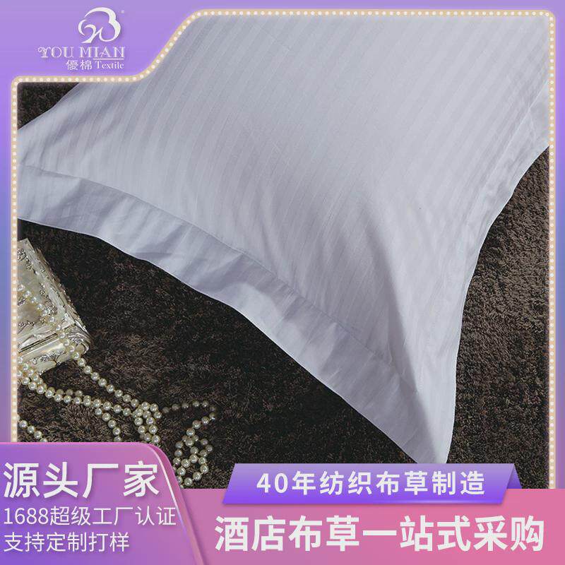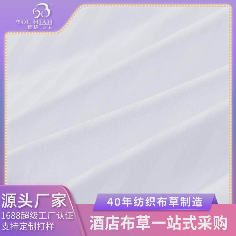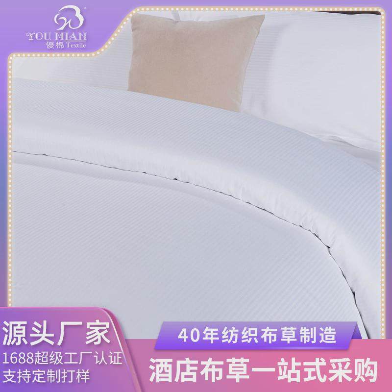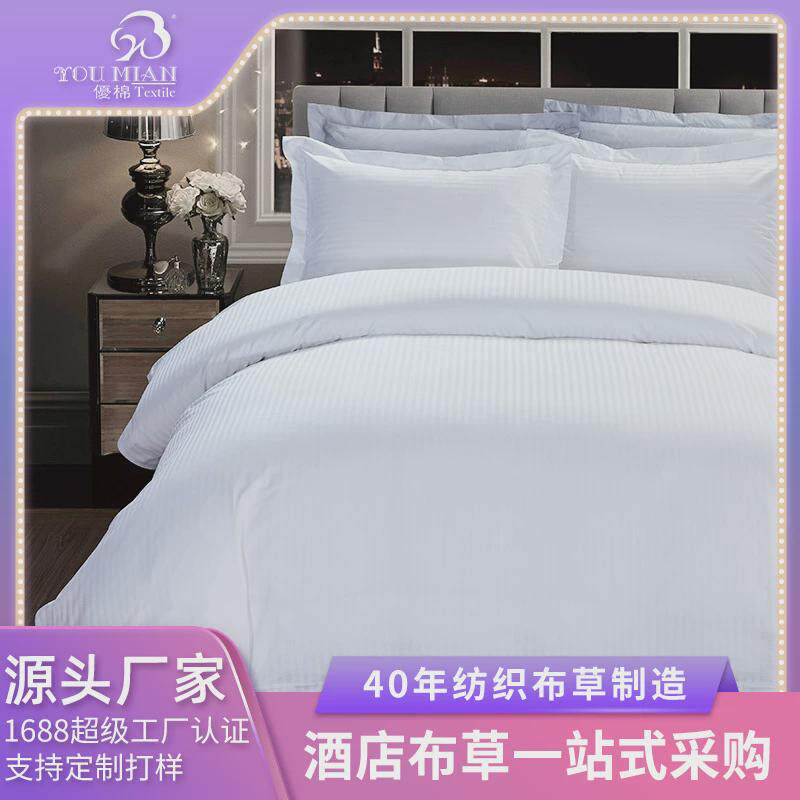 优棉五星级酒店床上用品客房布草缎条白色全棉四件套厂家直销
