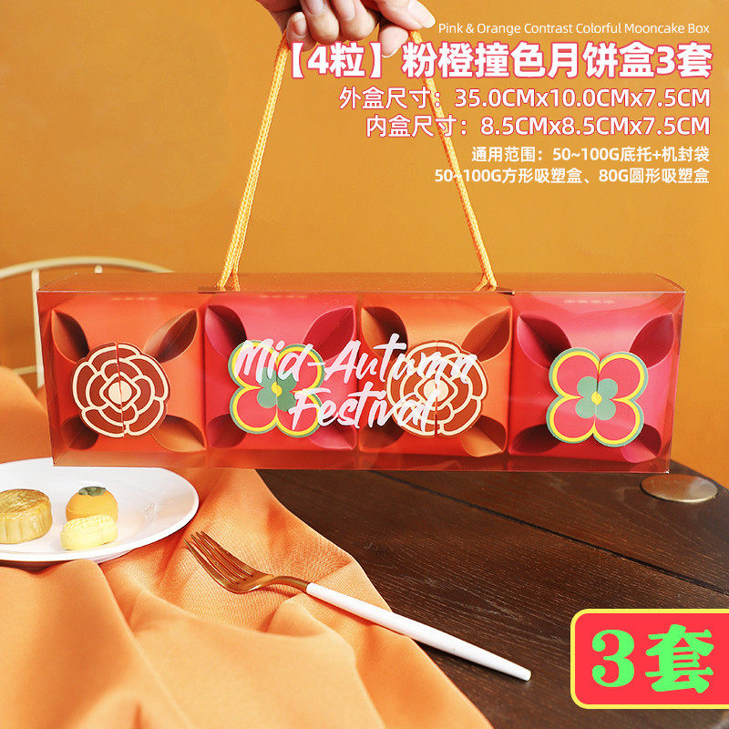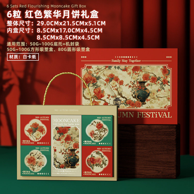 2025手提袋4粒花好月圆礼盒中秋月饼盒蛋黄酥冰皮50g包装礼品新款