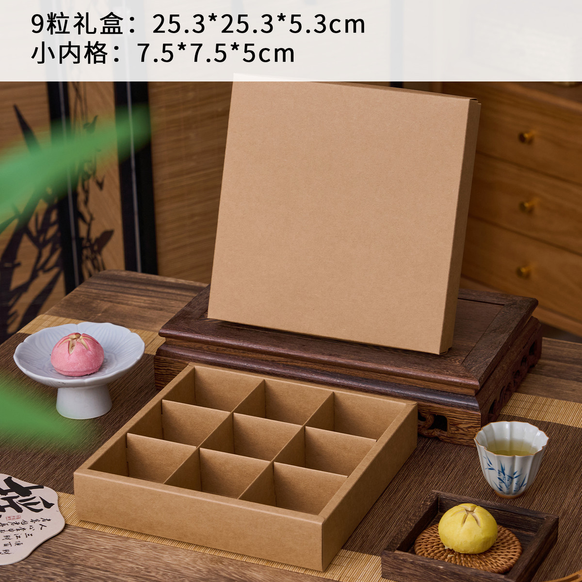 2024牛皮纸9粒中秋节月饼包装盒冰皮流心九宫格蛋黄酥礼品盒新款