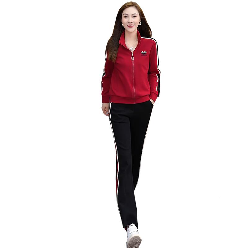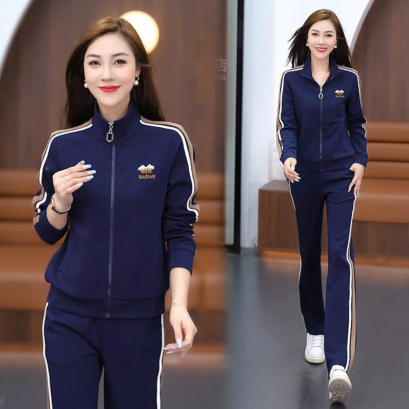 运动套装女82266671春装款时尚秋洋气立新卫领衣大码休闲两件套
