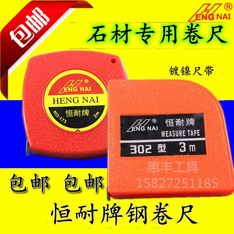 恒耐牌2米防水不锈钢大理石石材3米尺子卷尺5米加厚尺钢卷尺