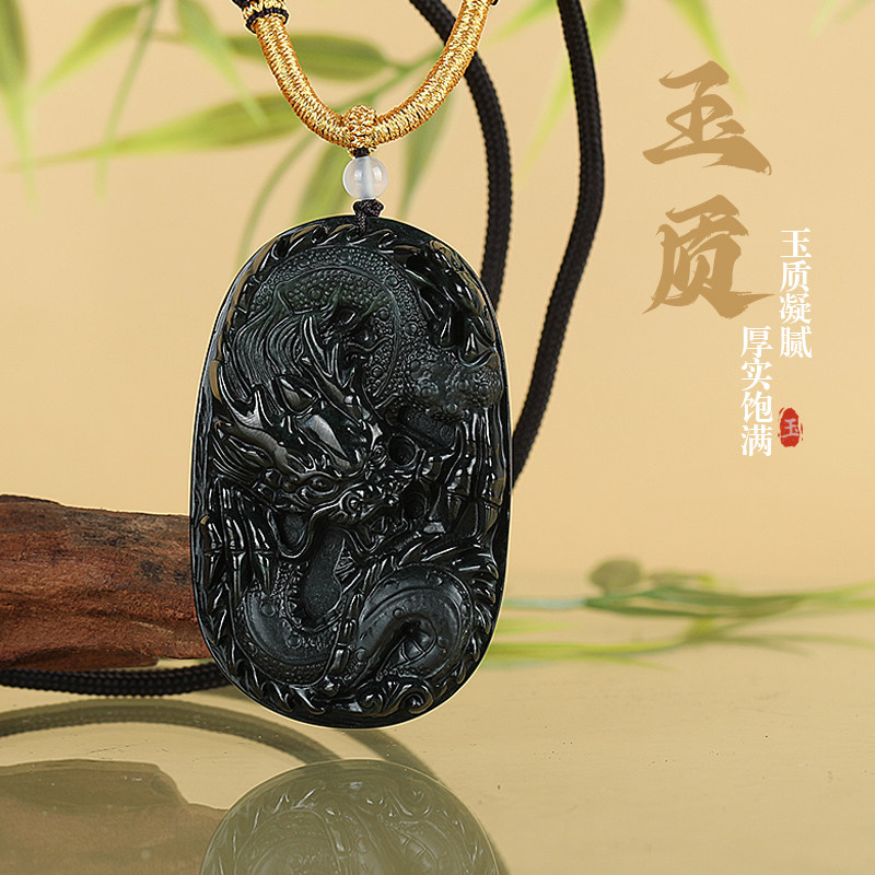 首页> 配饰> 唐今玉天然A货墨翠翡翠墨玉龙牌玉石吊坠生肖龙冰种挂件男士霸气