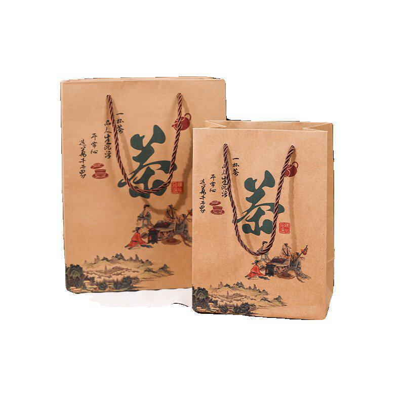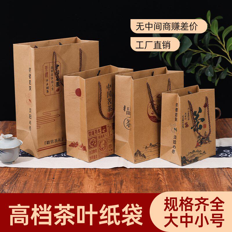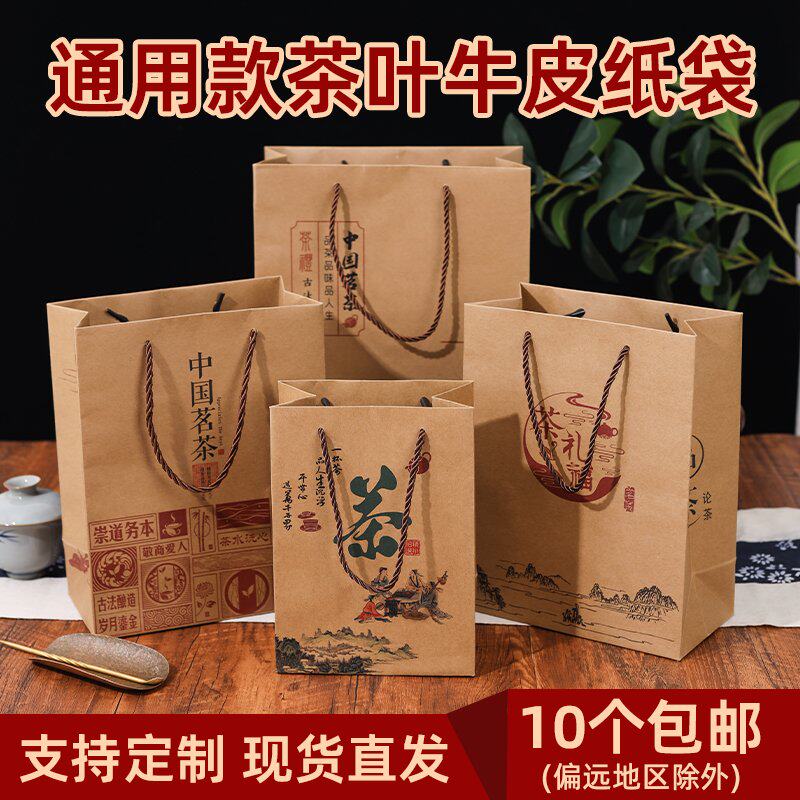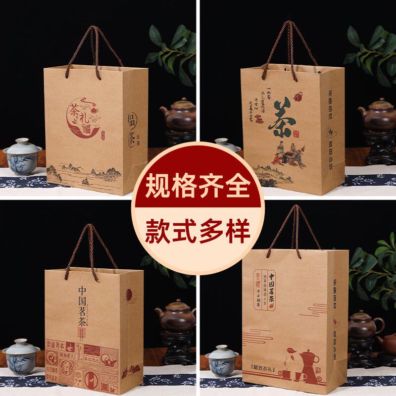 茶叶手提袋通用中国茗茶纸袋茶叶牛皮纸包装袋龙井茶包装盒定制