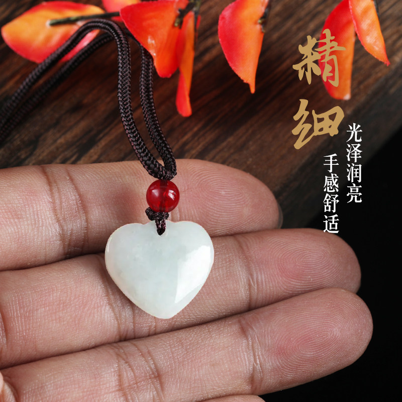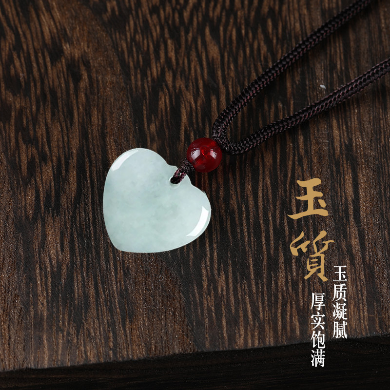唐今玉天然缅甸A货翡翠小爱心吊坠糯种玉石挂件男女情侣款玉坠礼