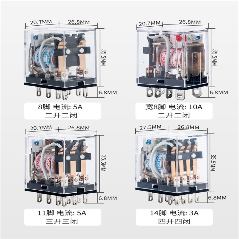 中间继电器220v交流12v小型电磁开关24v 直流8脚14脚11脚380V
