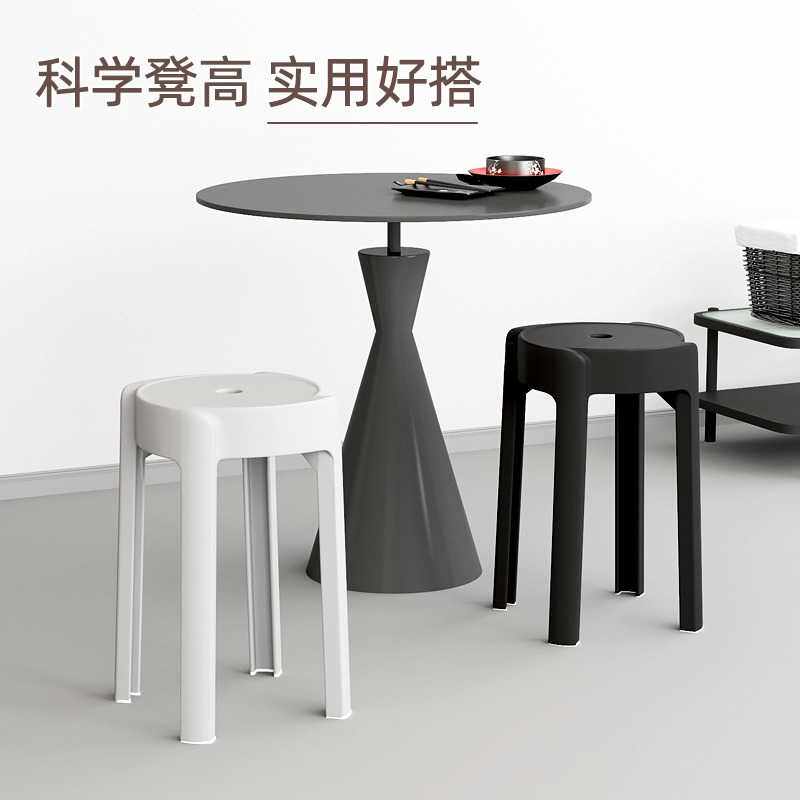 塑料凳子家用加厚可叠放圆板凳结实耐用餐桌备用凳现代简约风车凳